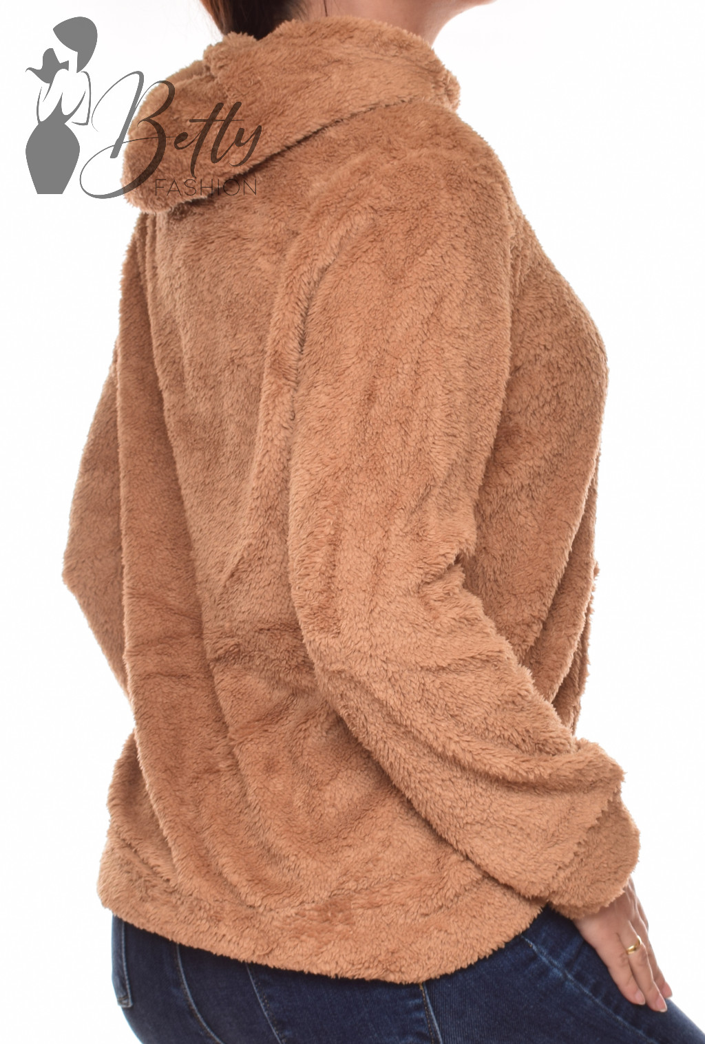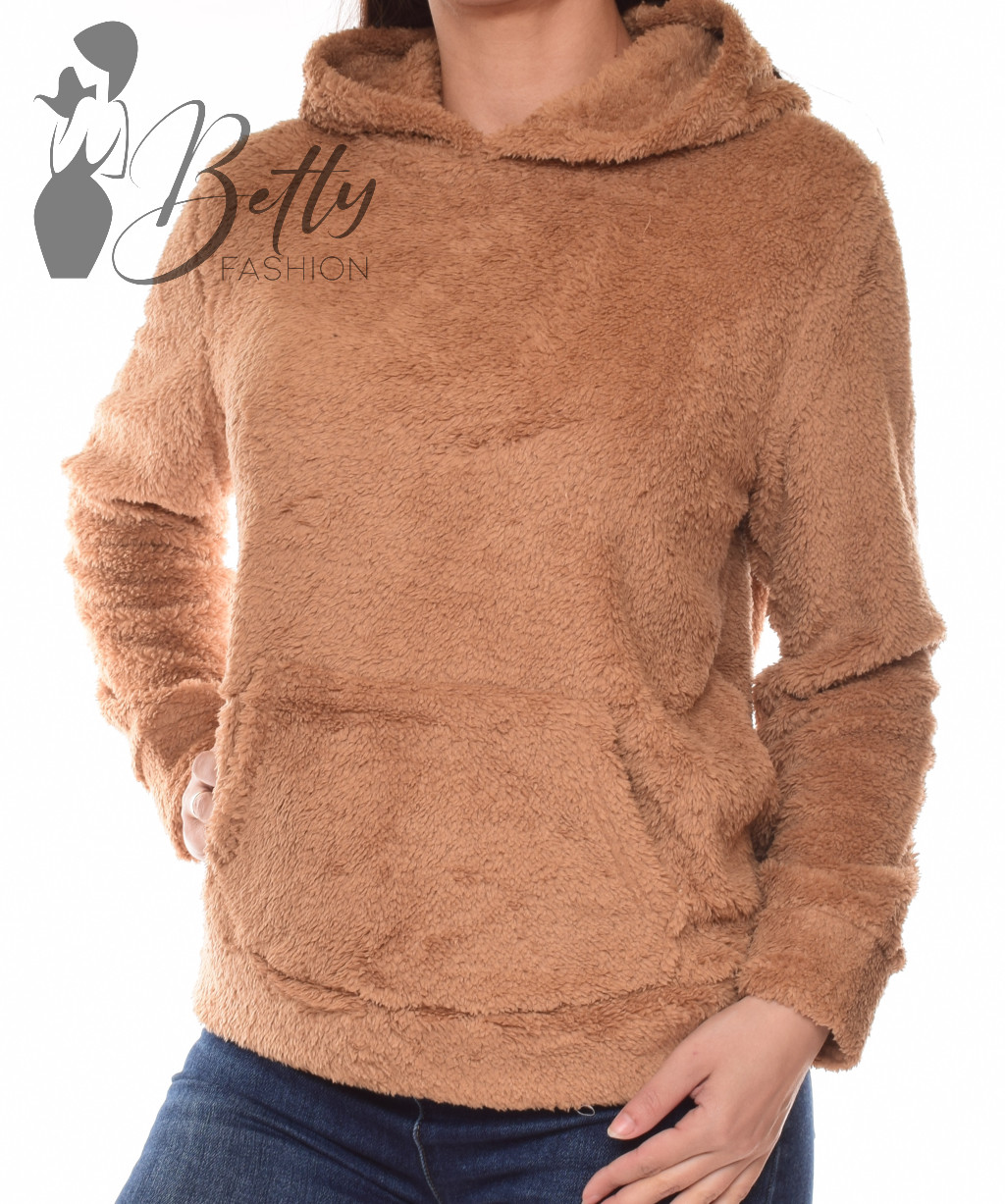 Barna színű, szőrmés pulóver L/XL