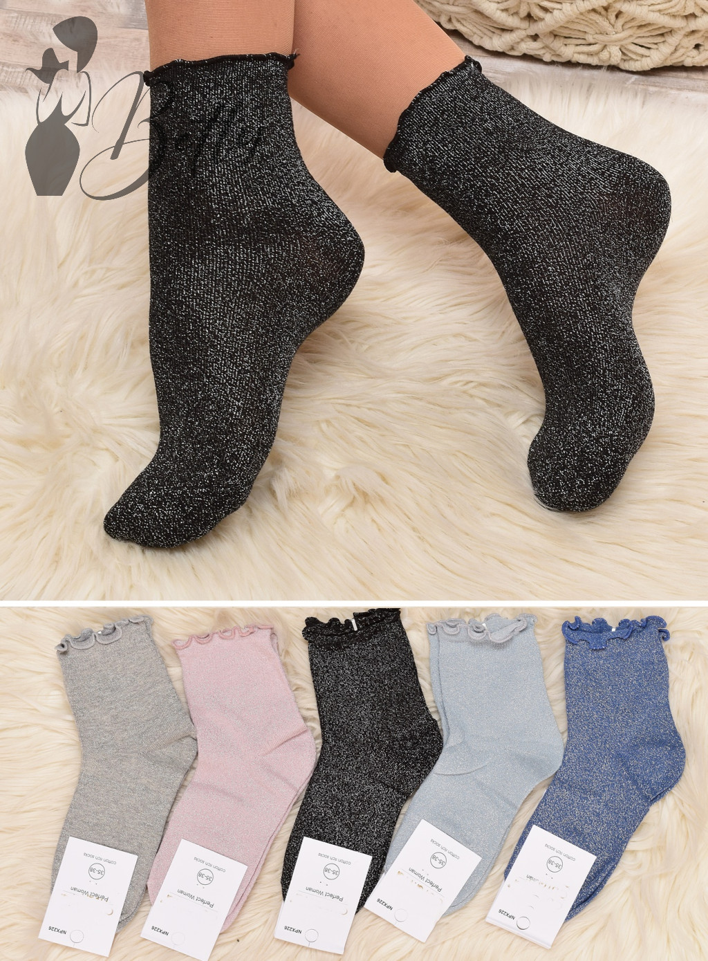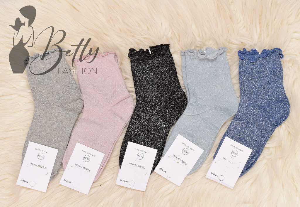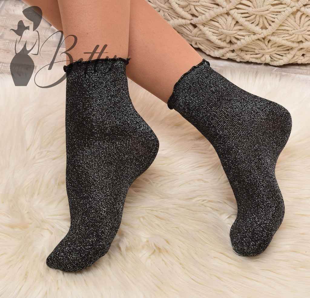 Csillogó szálas, fodros szegélyű zokni