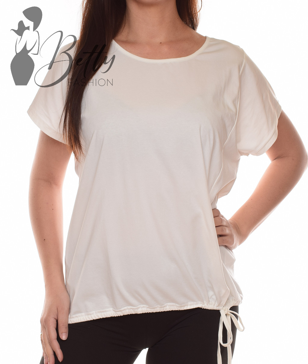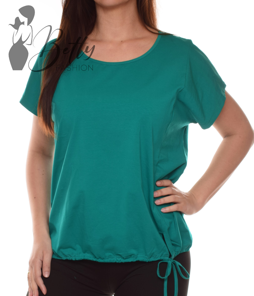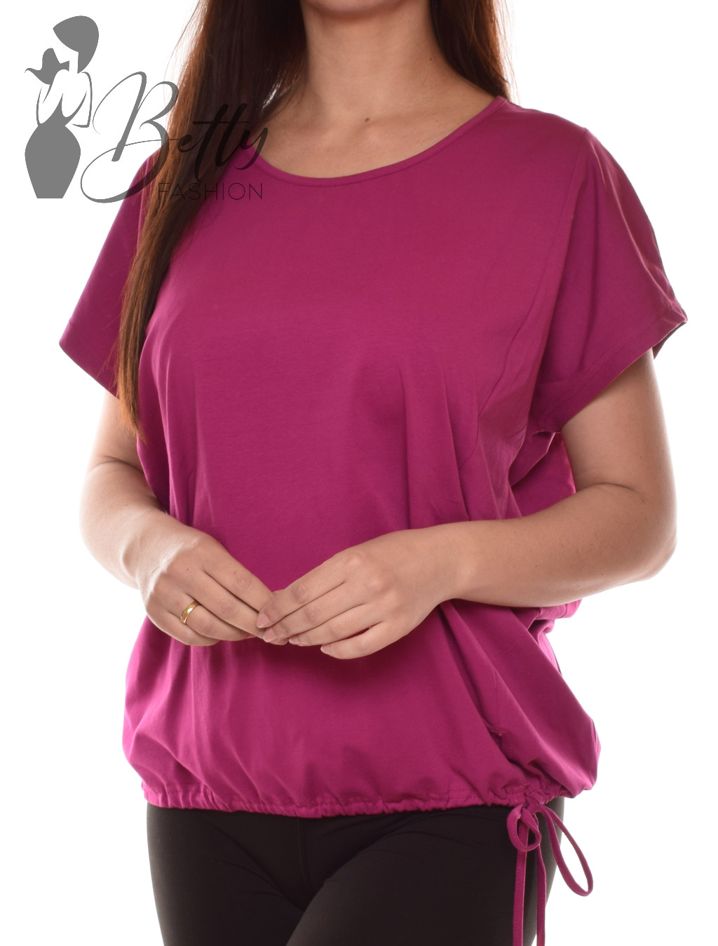 Egyszínű, bő szabású, alján összehúzható, rövid ujjú felső