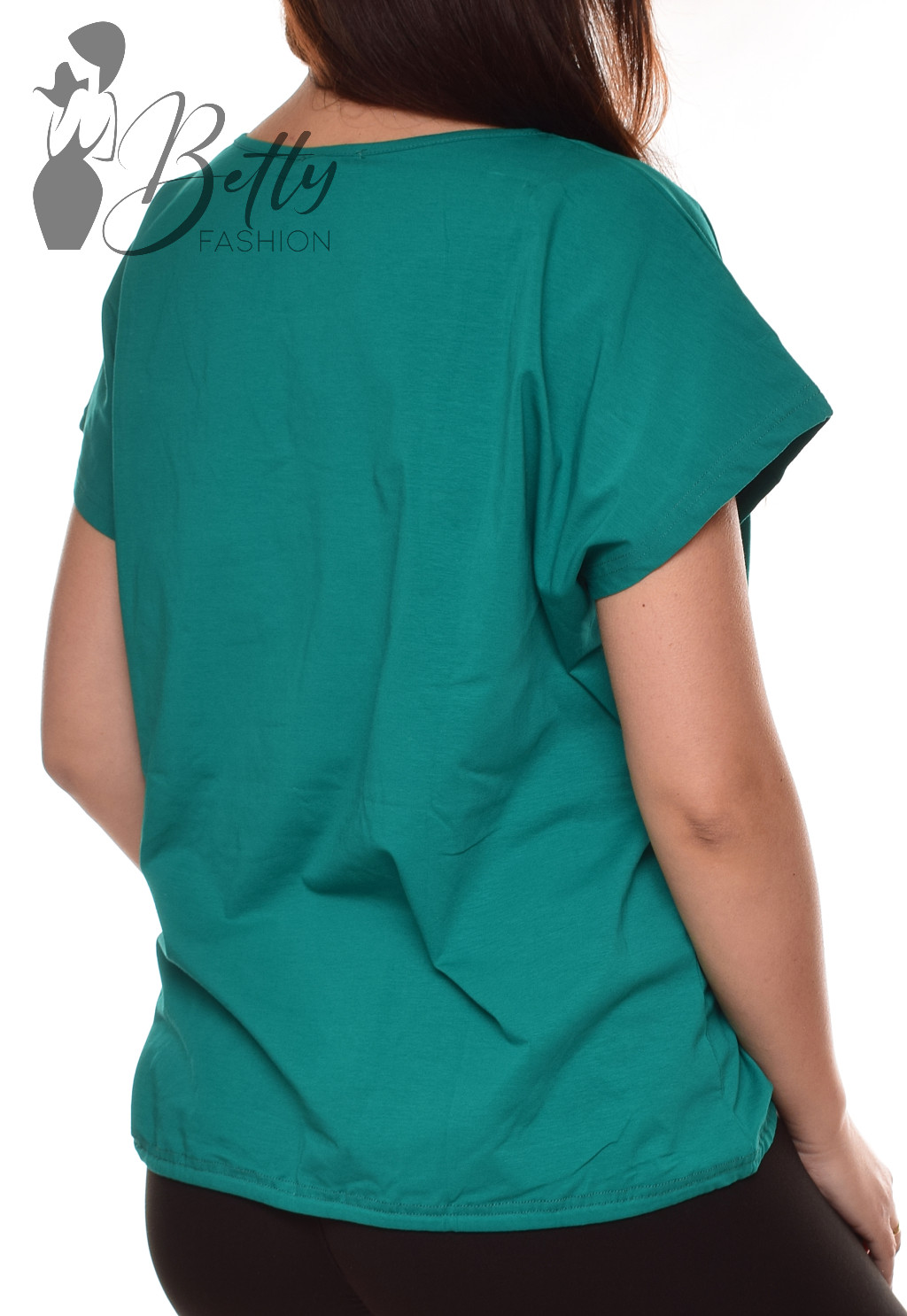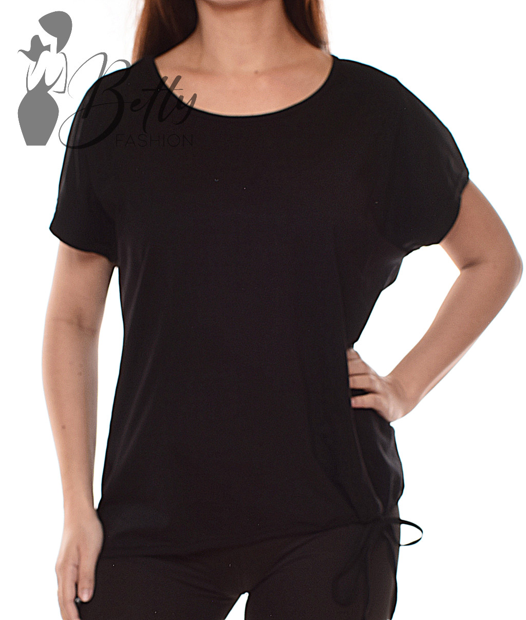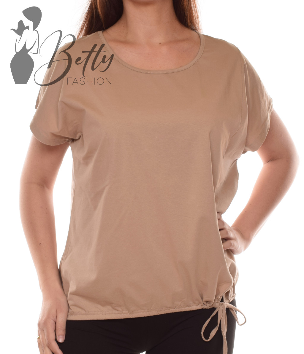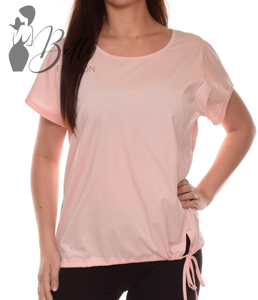 Egyszínű, bő szabású, alján összehúzható, rövid ujjú felső