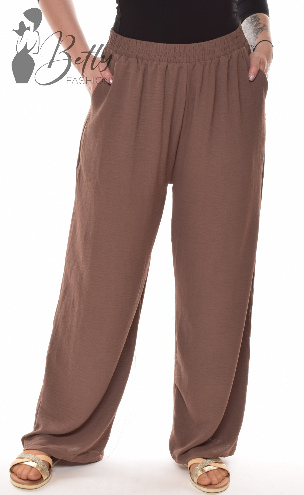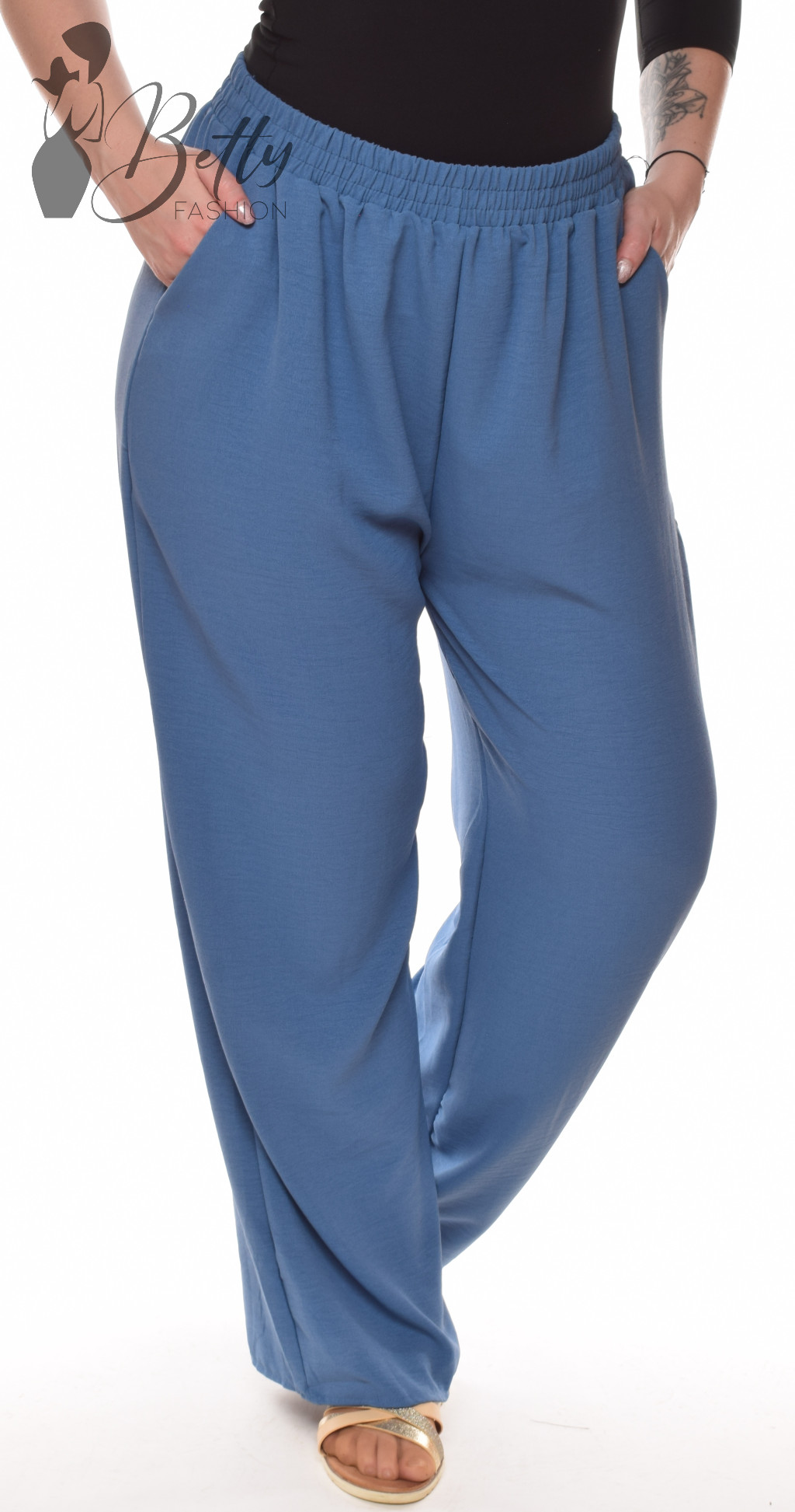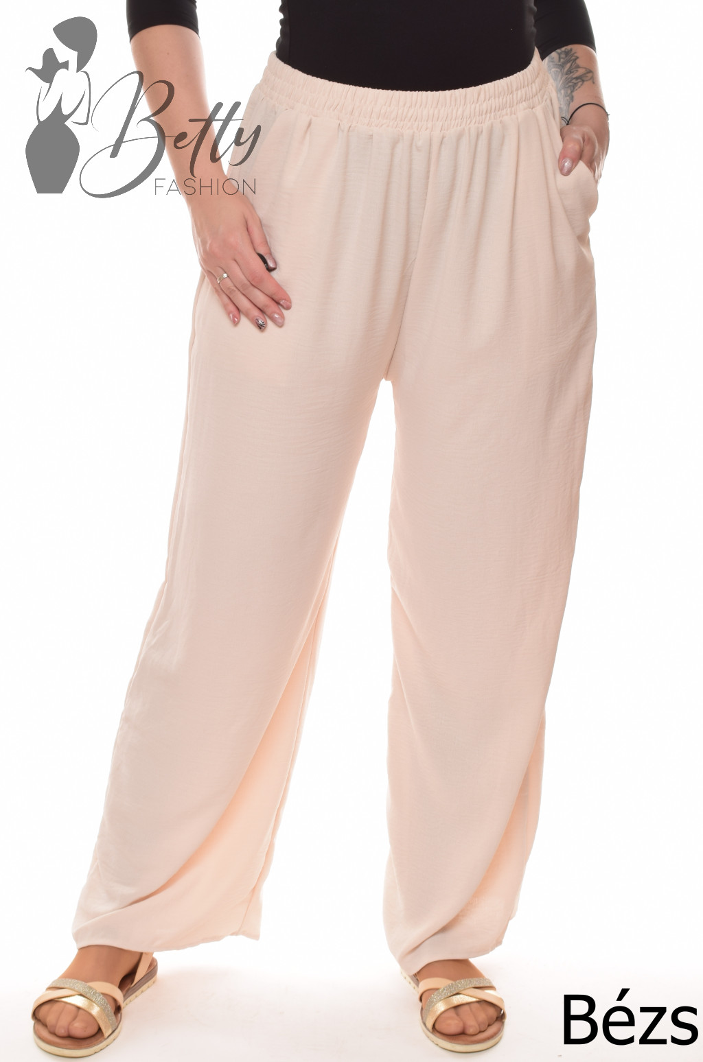 Egyszínű, gumis derekú, zsebes, bő szárú lenge nadrág