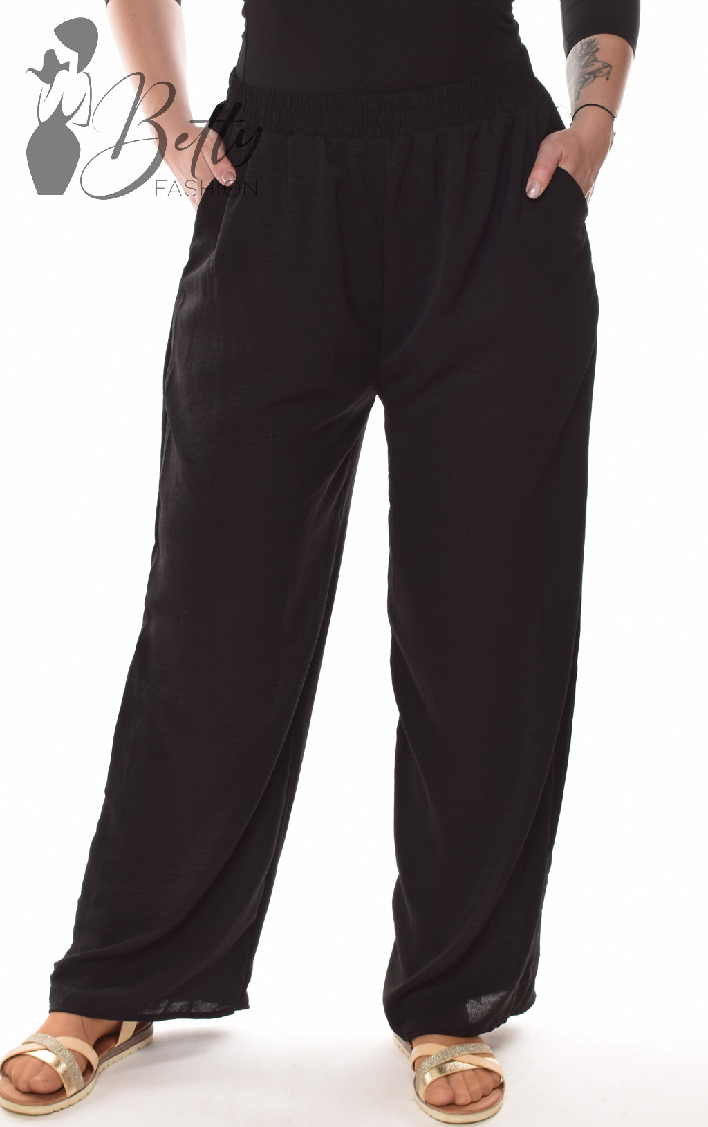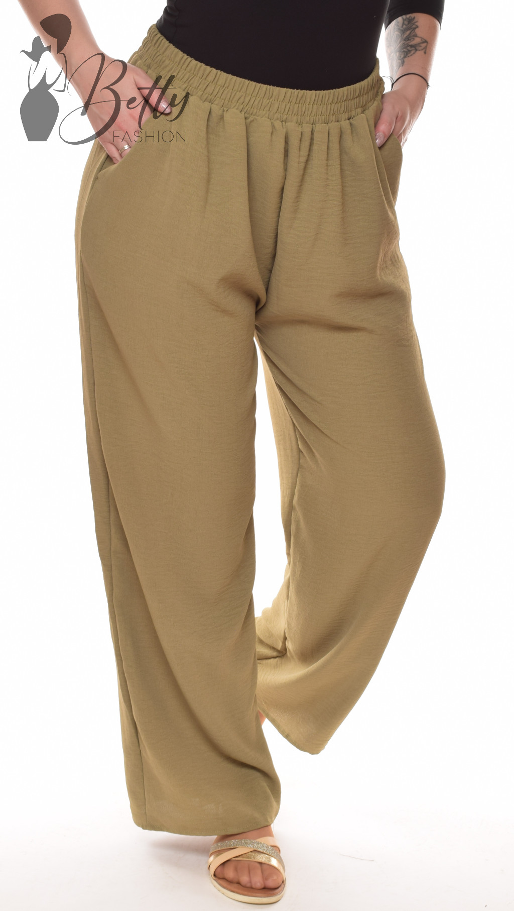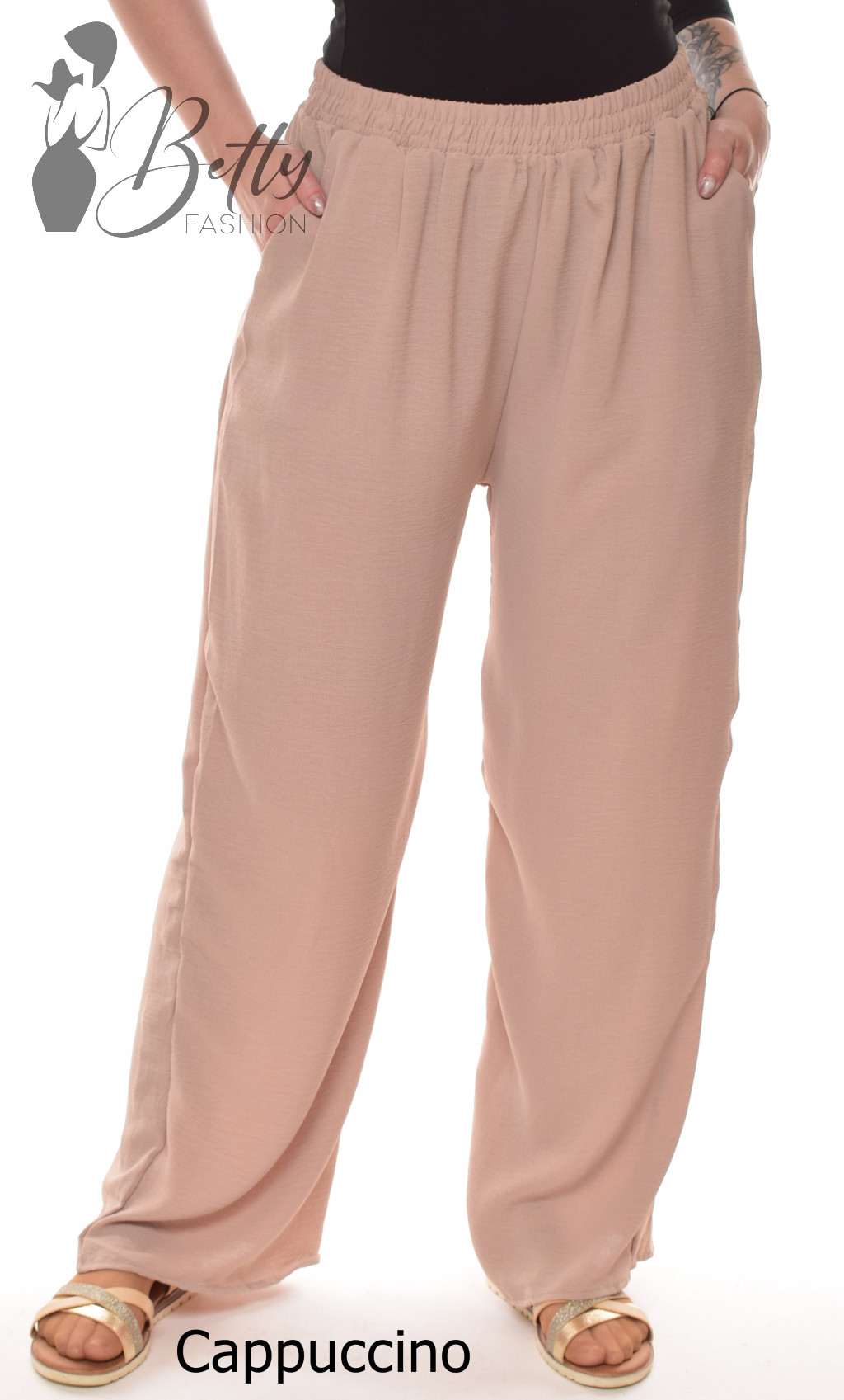 Egyszínű, gumis derekú, zsebes, bő szárú lenge nadrág