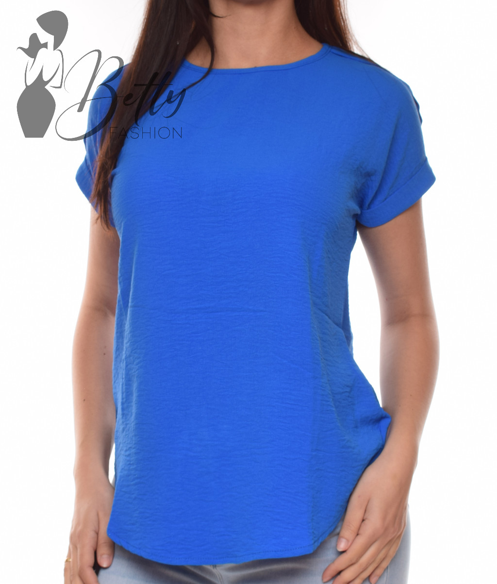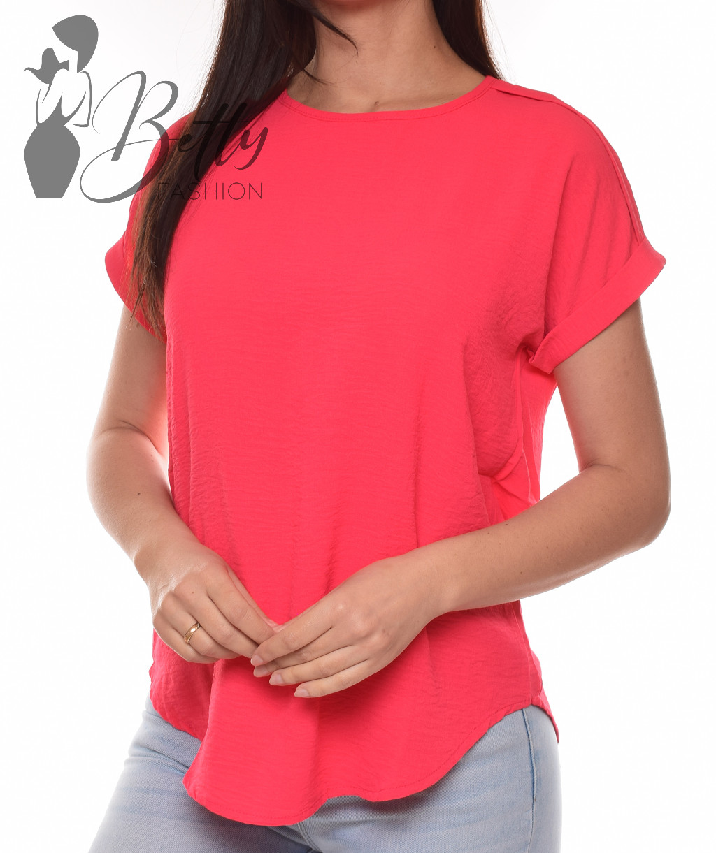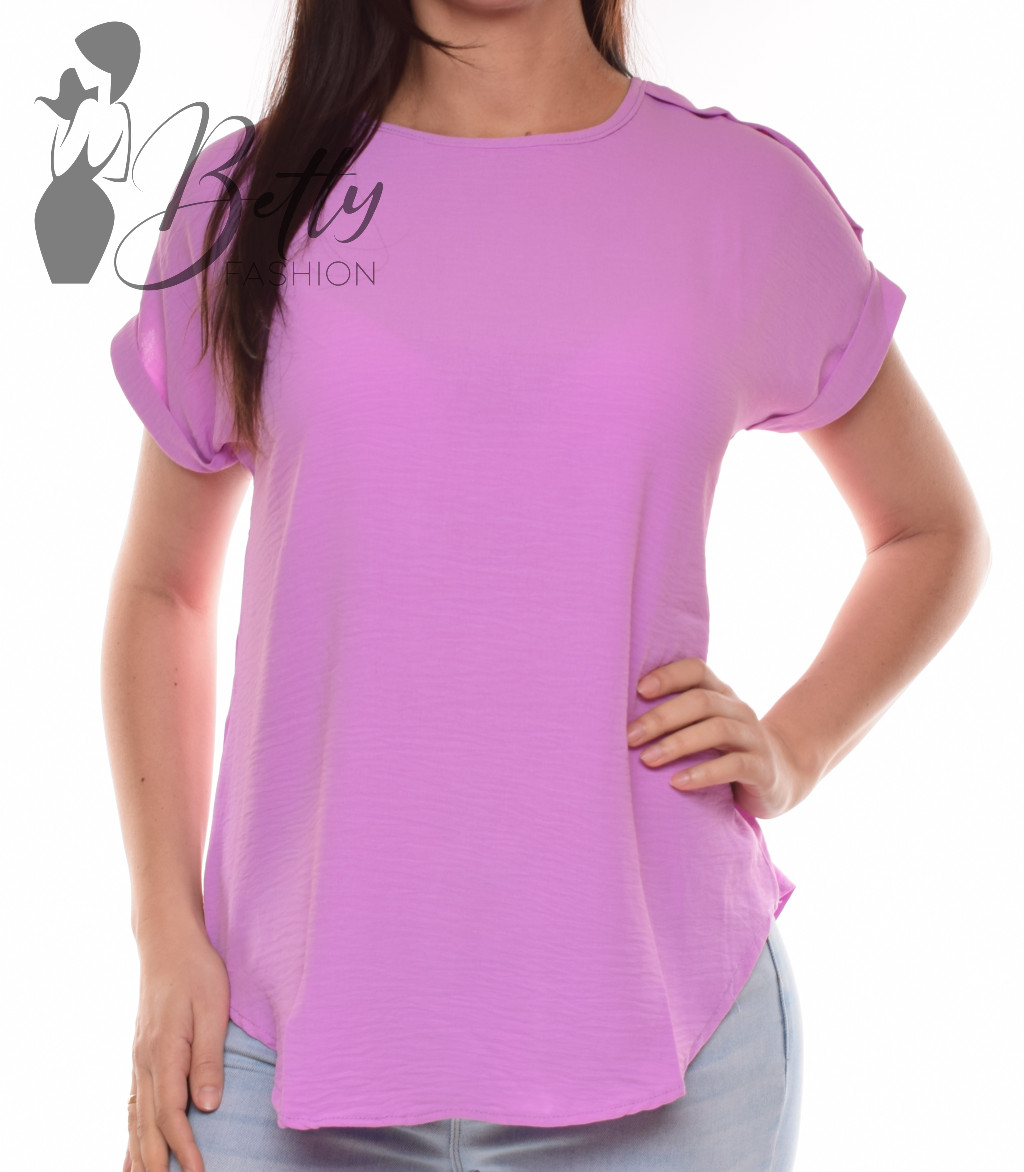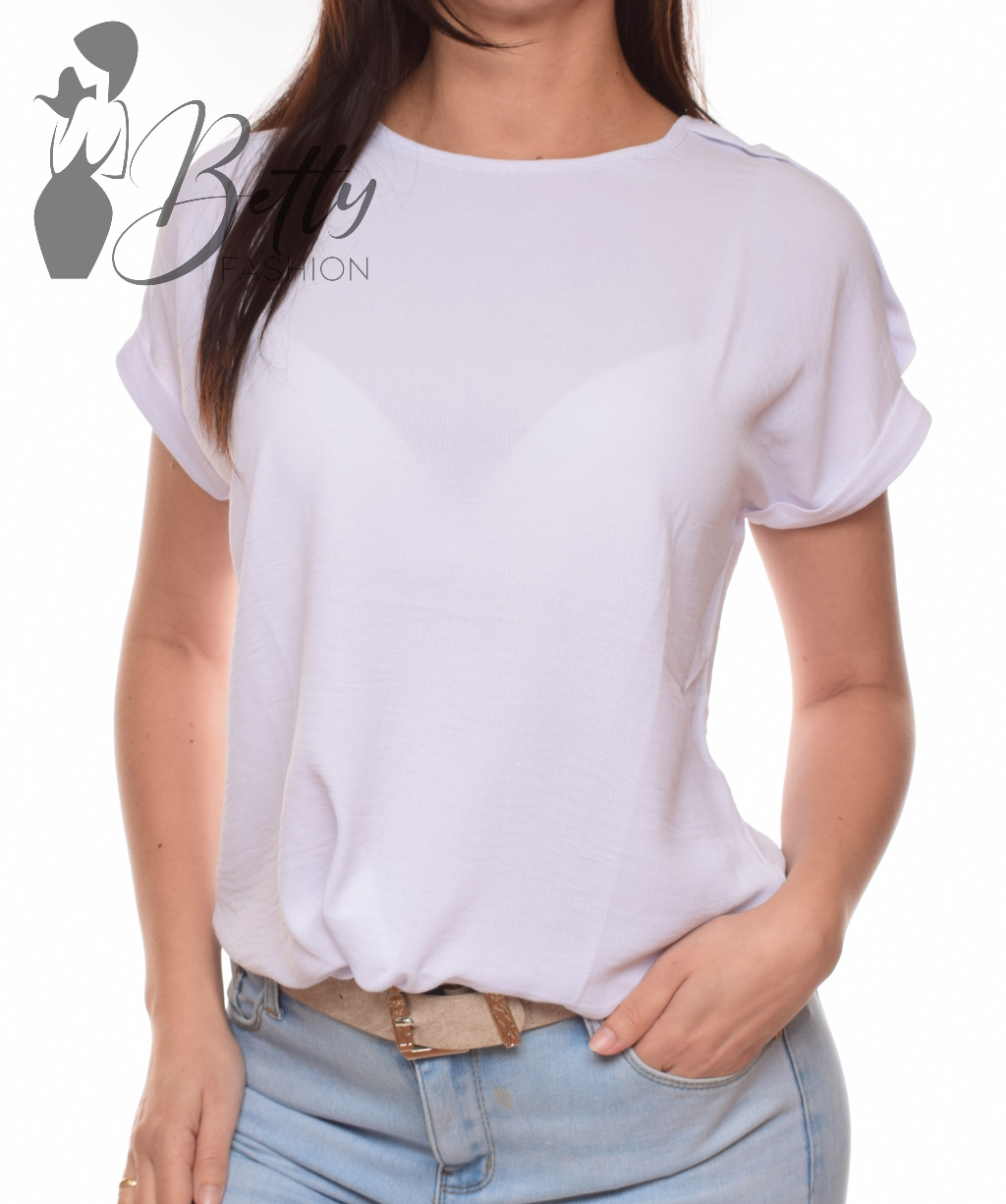 Kerek nyakú, lazább fazonú, kerekített aljú blúz