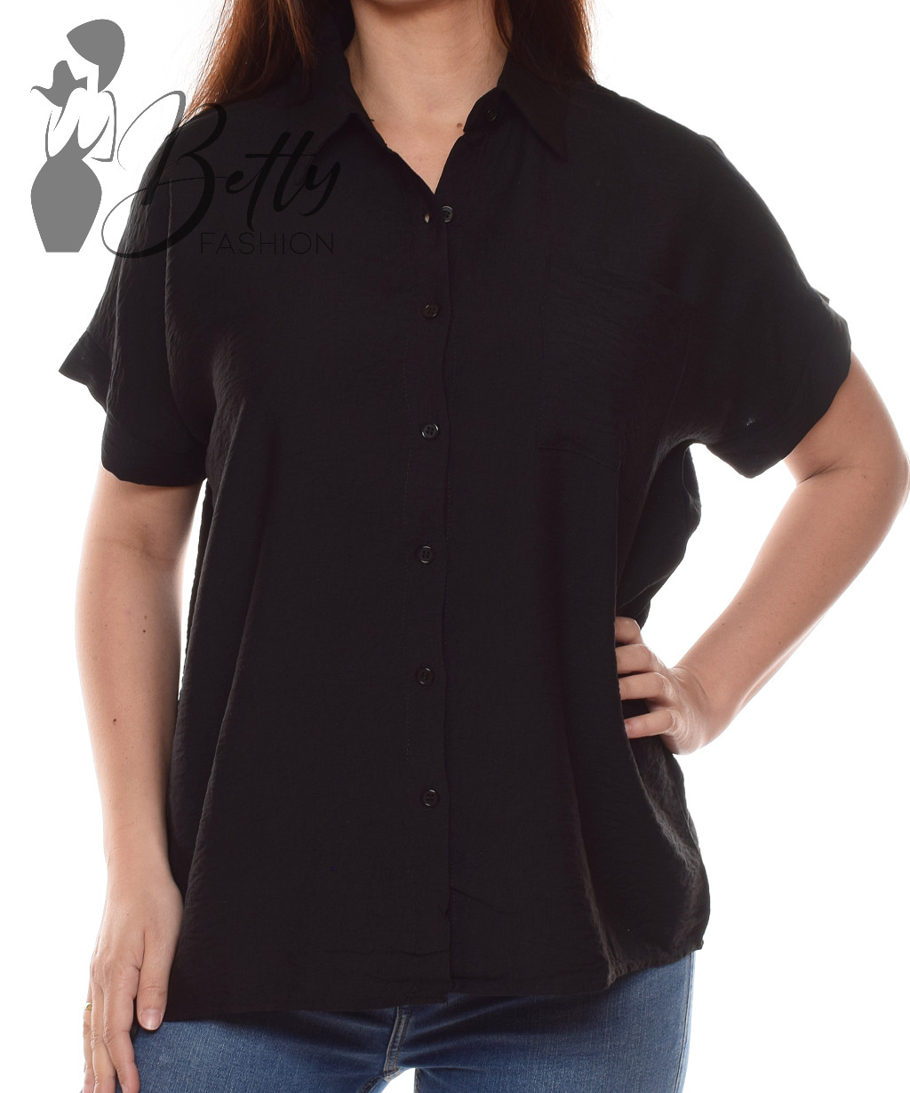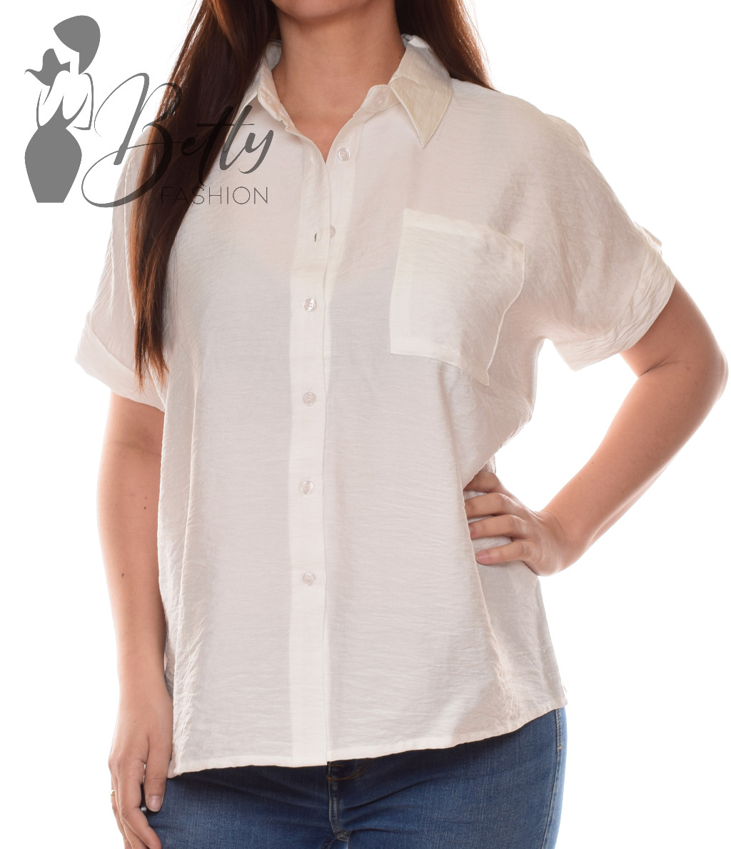 Egyszínű, galléros, végig gombos, mellnél zsebes ing/blúz