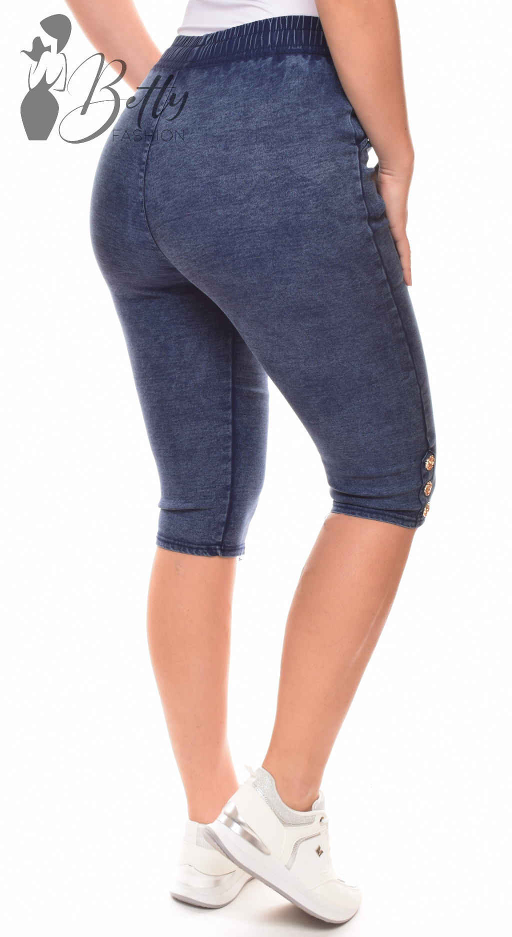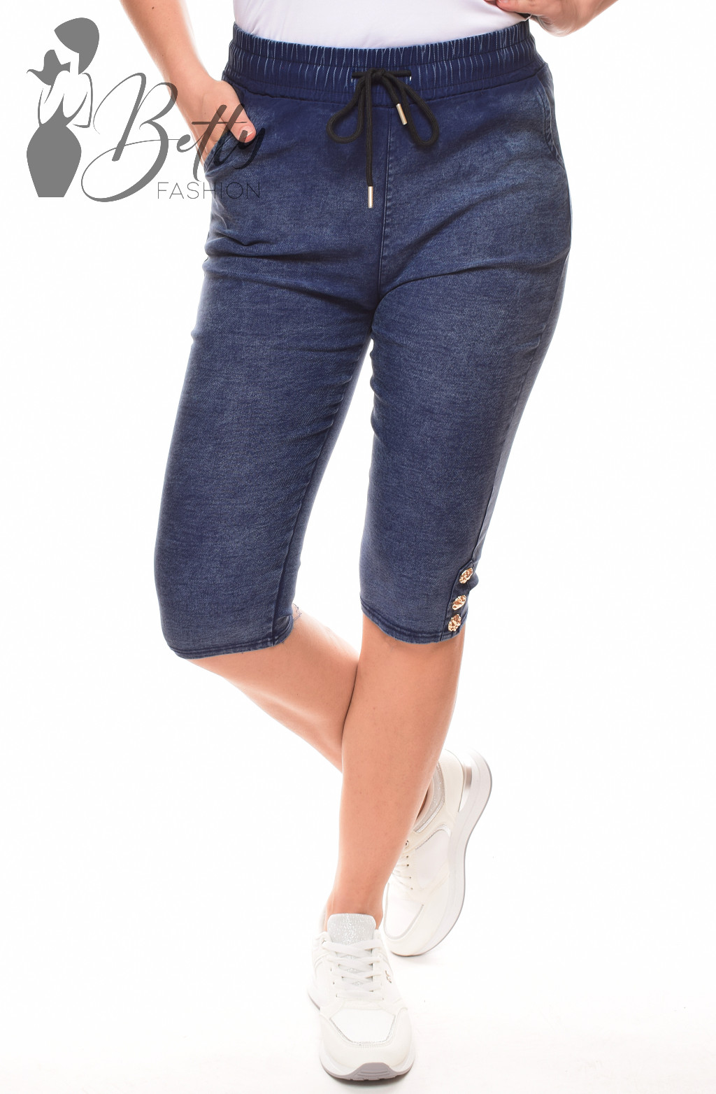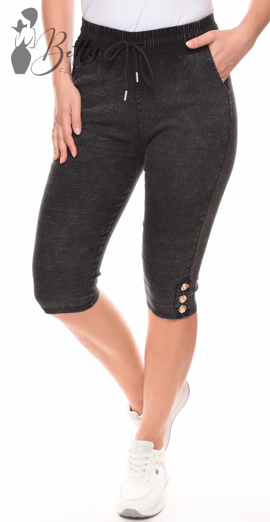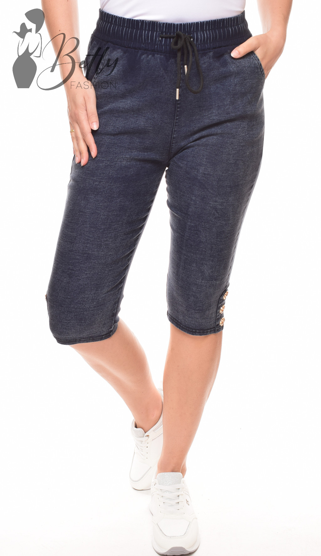 Gumis és megkötős derekú, sztrecces, farmer hatású térdnadrág