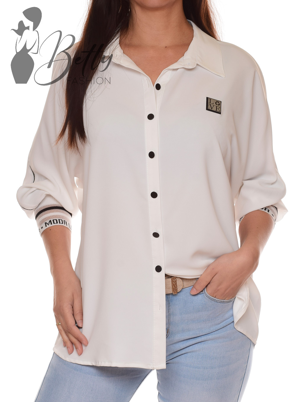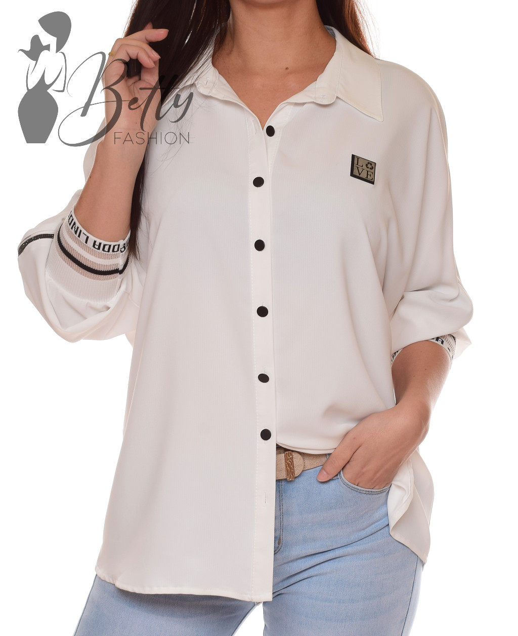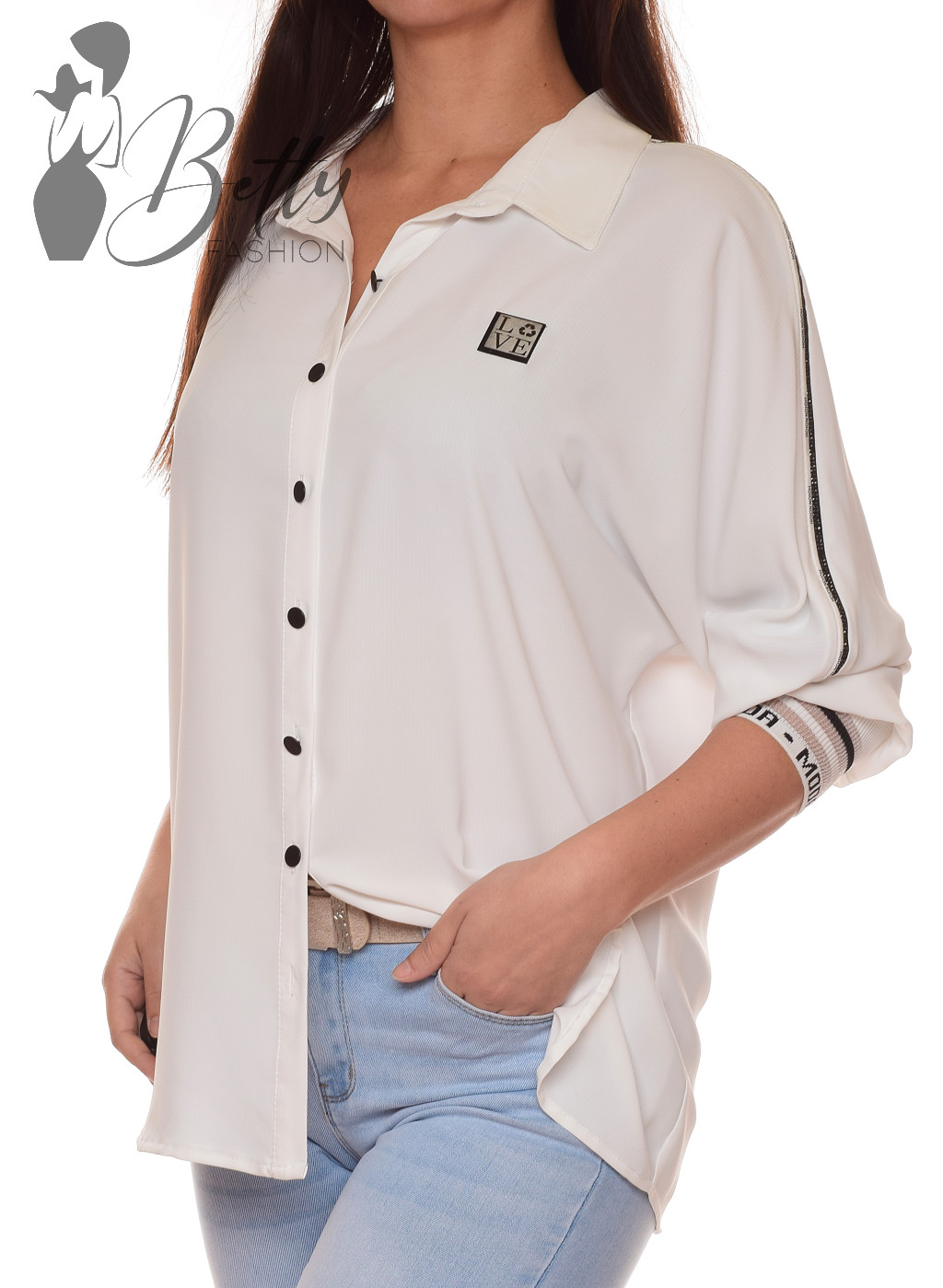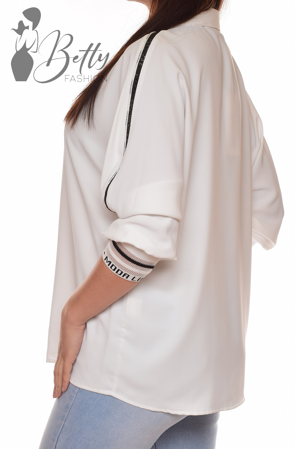 Ujjain strasszköves, ujja végén feliratos passzéval