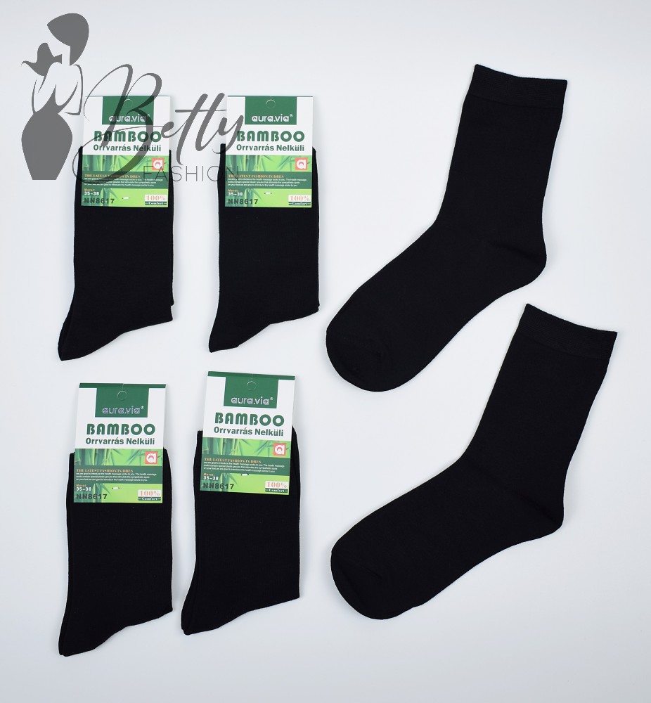 Fekete színű, normál vastagságú, bambusz zokni
