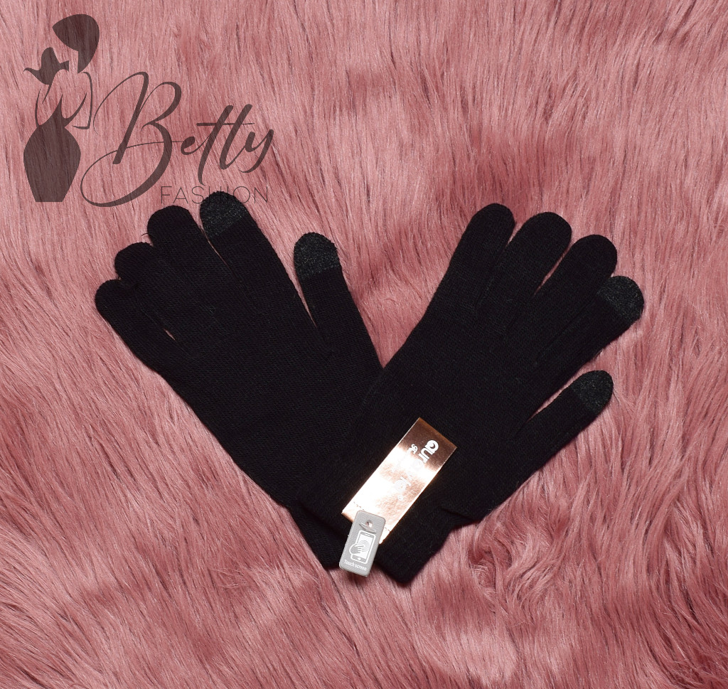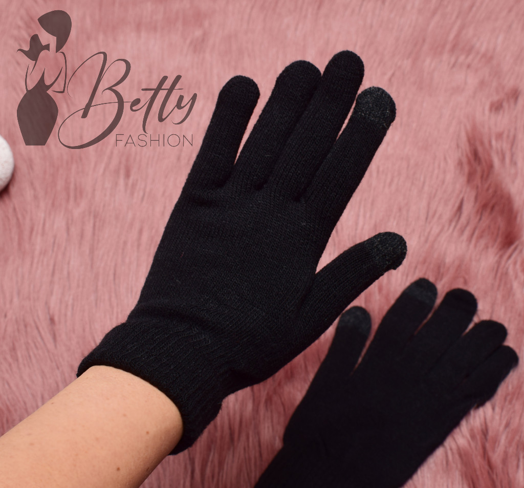 Fekete színű, kötött kesztyű, bordás passzés kézelővel