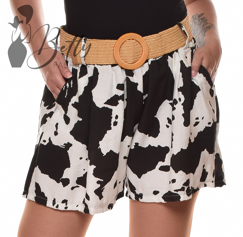 Folt mintás, bő szárú, lenge rövidnadrág + fonott öv S-M-L