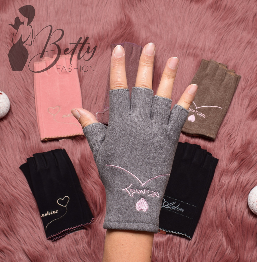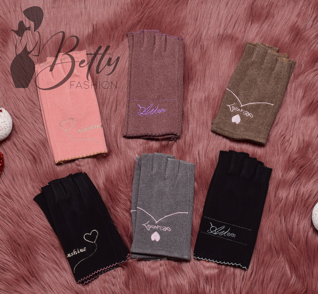 Hímzett feliratos és mintás, ujjvég nélküli kesztyű
