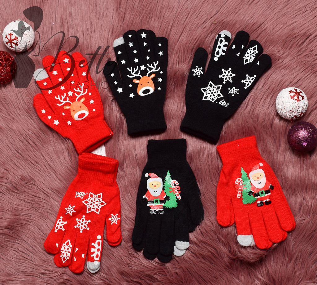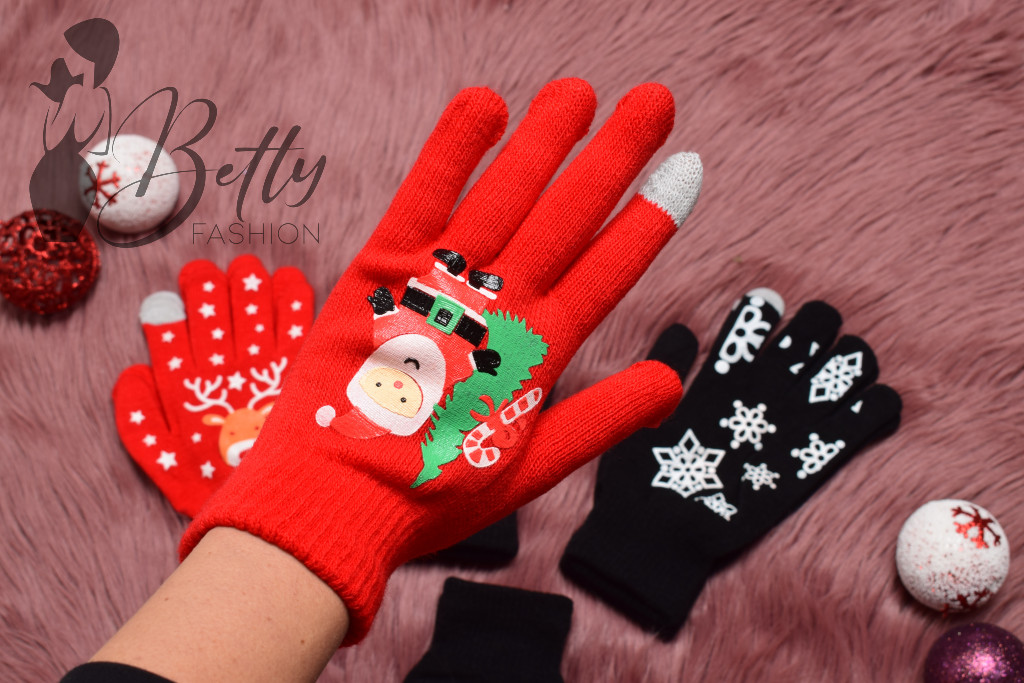 Karácsonyi mintás, puha, finomkötött kesztyű bordás passzés kézelővel