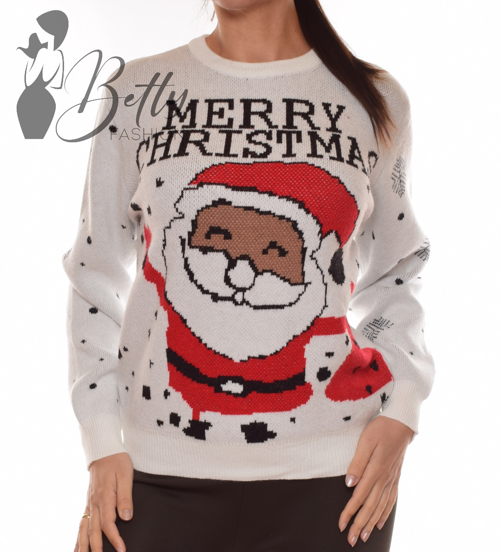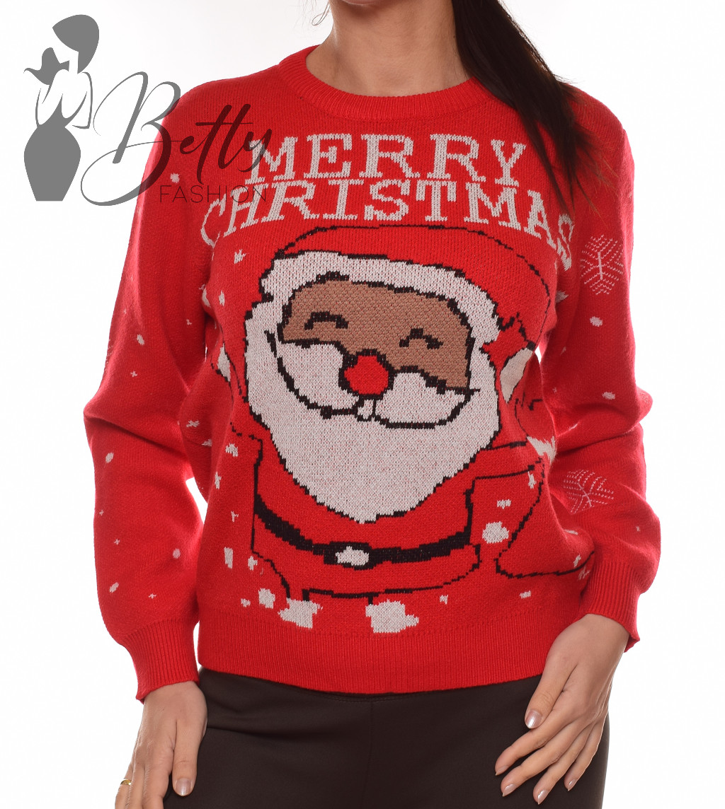 Merry Christmas feliratos és télapó mintás, kerek nyakú, meleg pulcsi