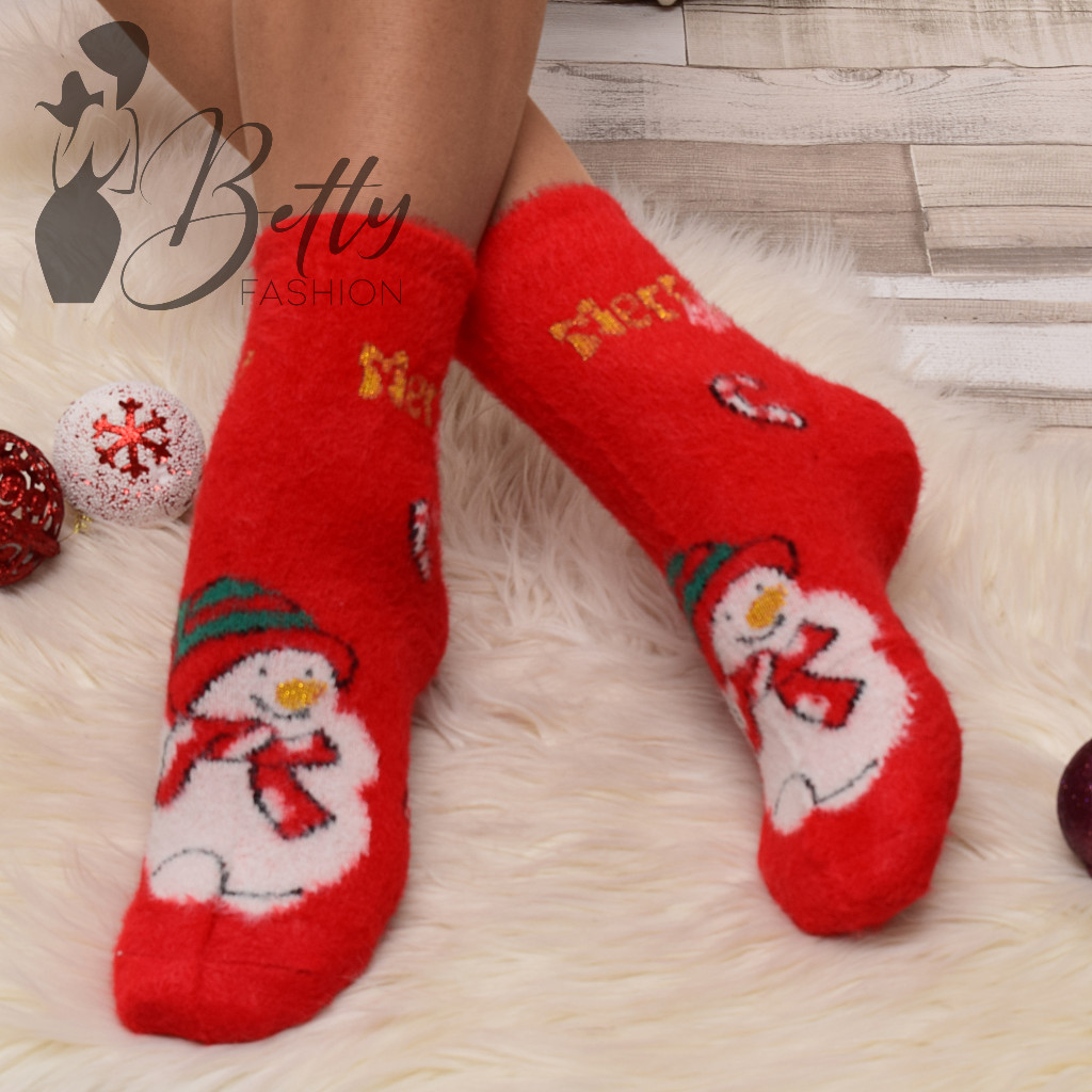 Karácsonyi mintás, meleg, szőrmés anyagú zokni