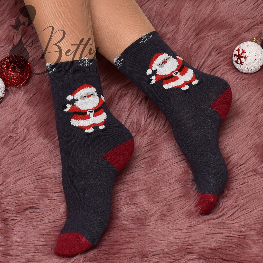 Sötétkék alapon mikulás mintás, puha, meleg, thermo zokni