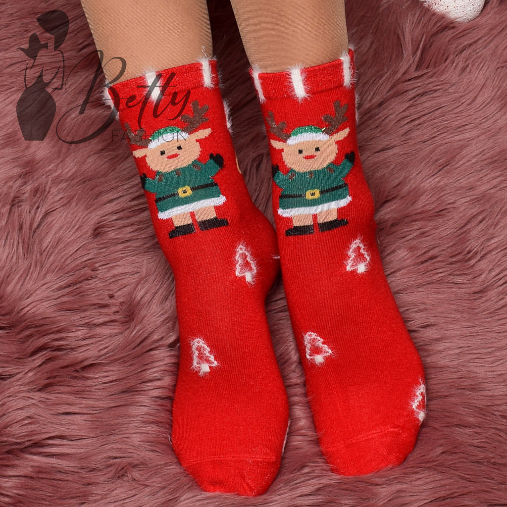 Piros alapon rénszarvas mintás, puha, meleg, thermo zokni