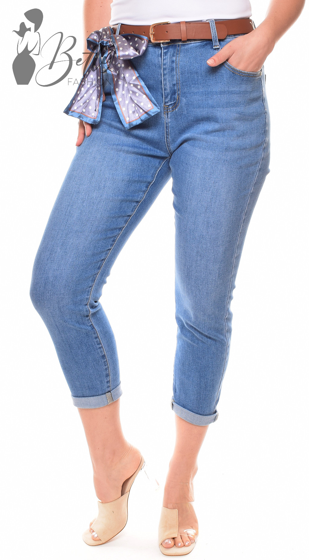Középkék színű farmer nadrág + öv XS, S, M, L, XL