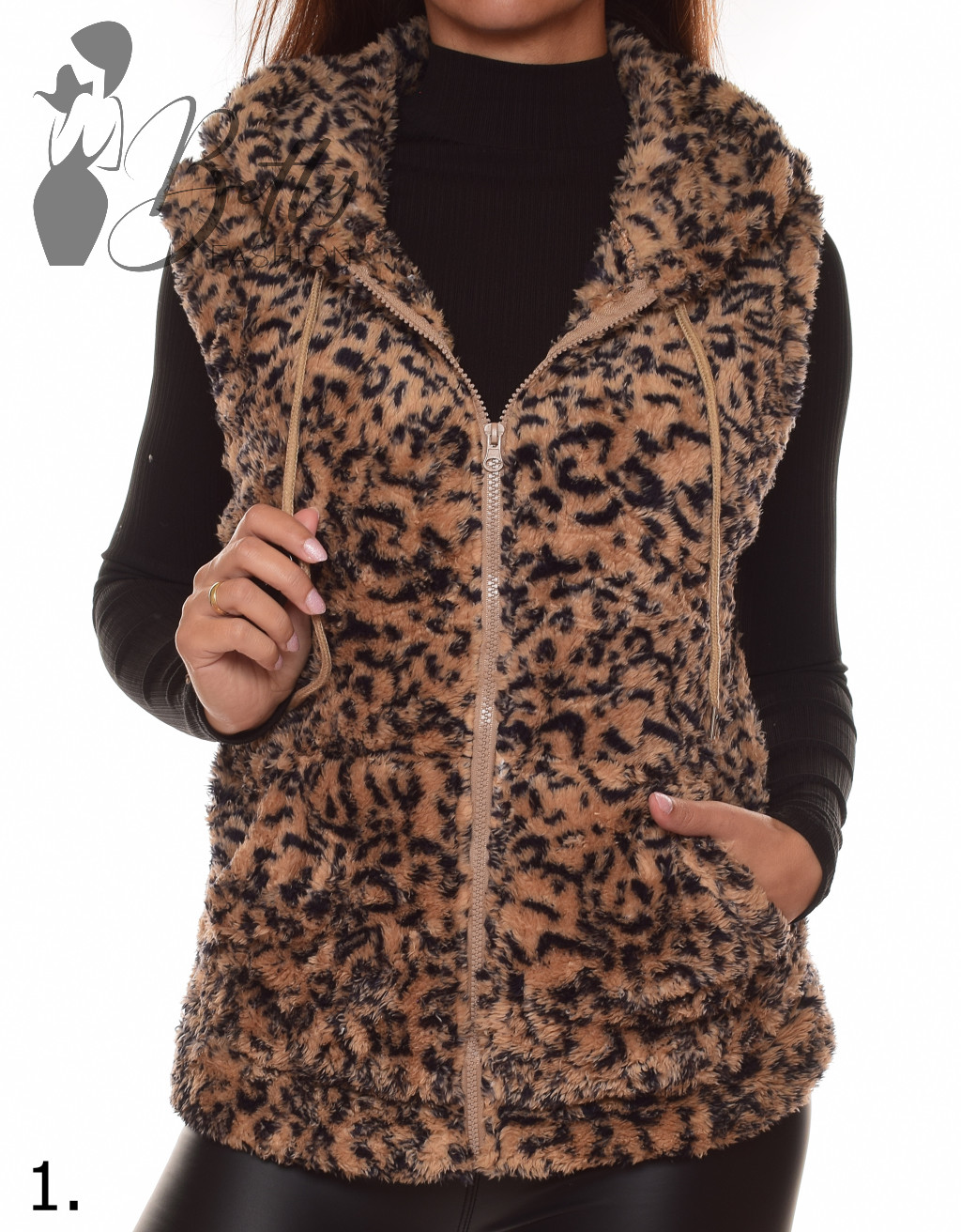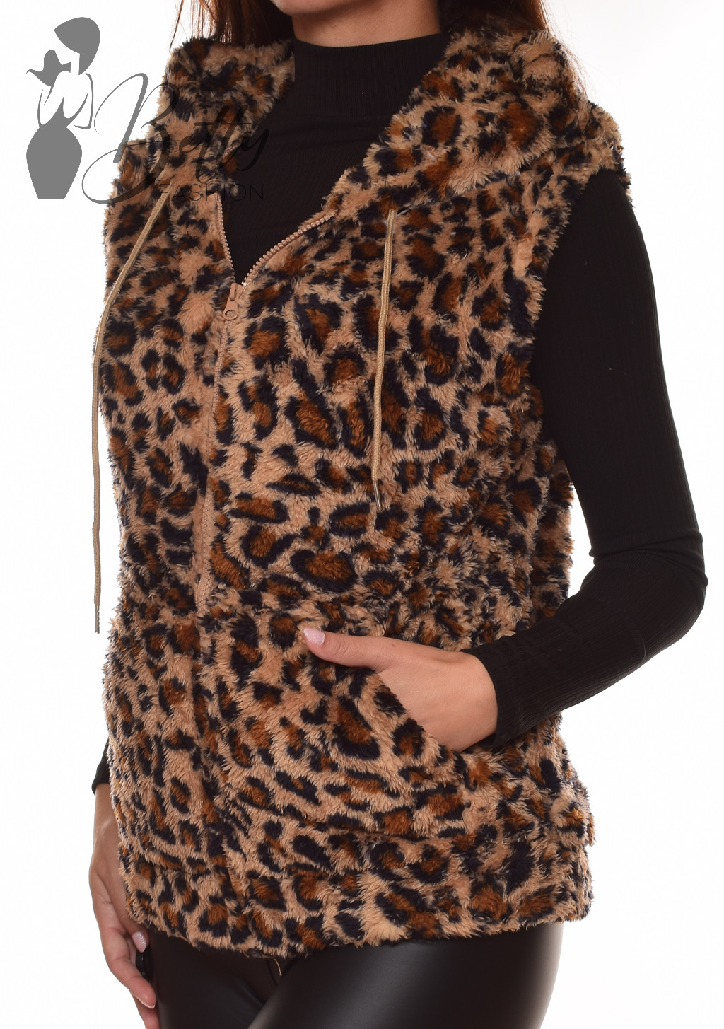 Leopárd mintás, pihe-puha anyagú mellény