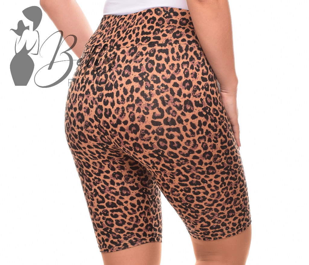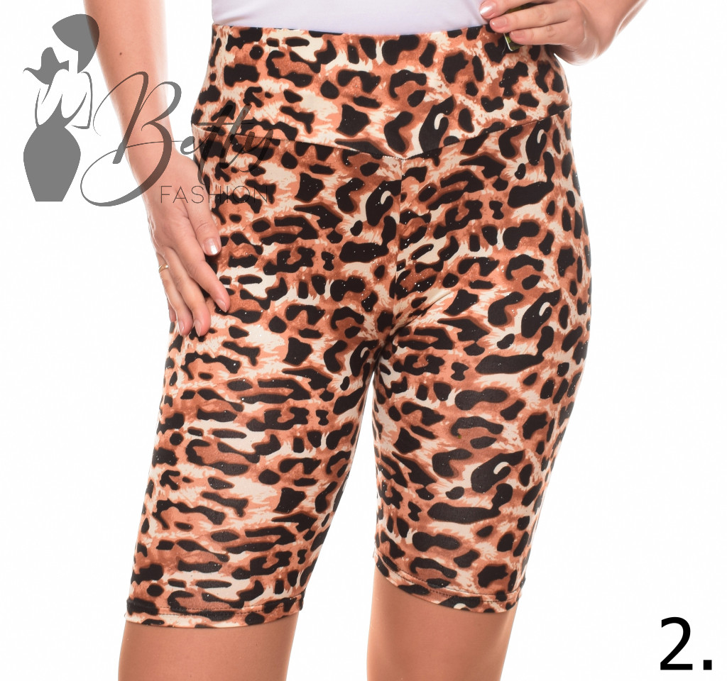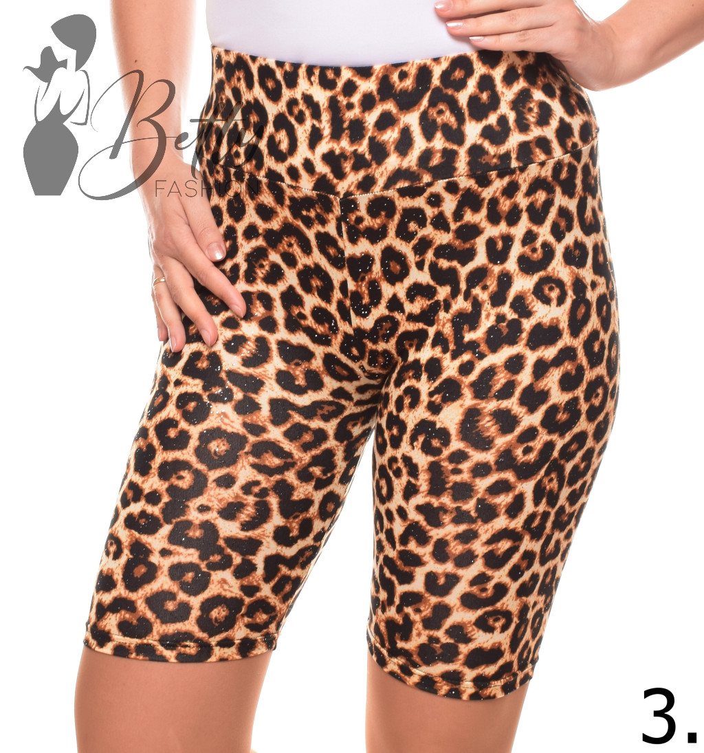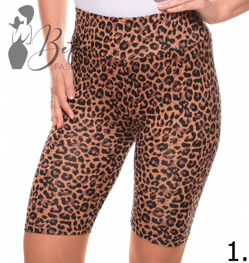 Leopárdmintás, csillogó pöttyös, gumis derekú legging/rövidnadrág