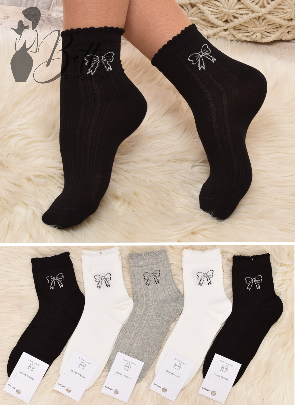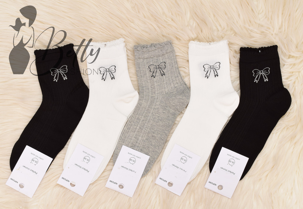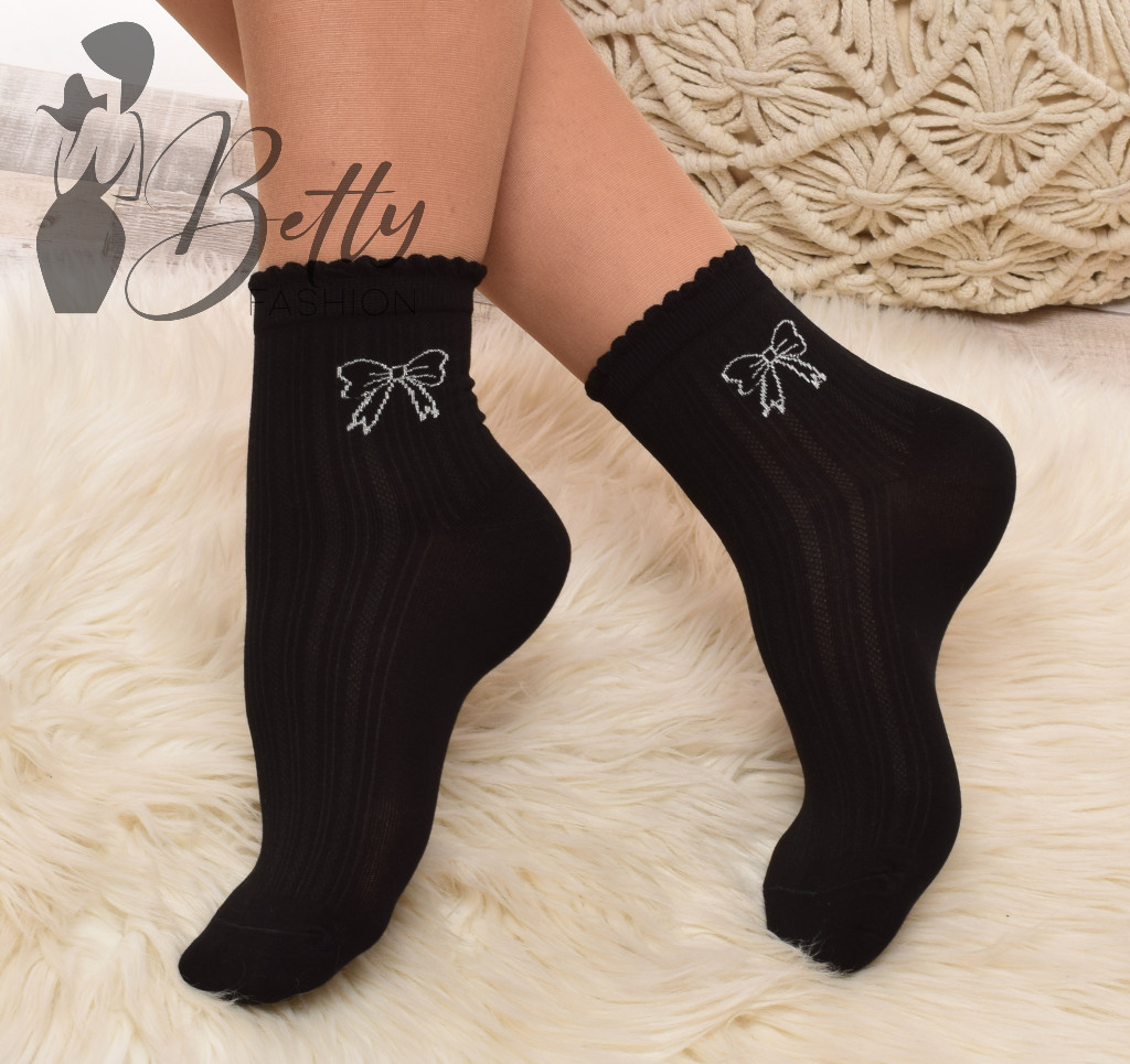 Csillogó masni mintás, fodros szegélyű, anyagában mintás zokni