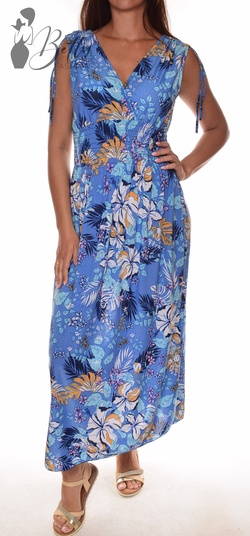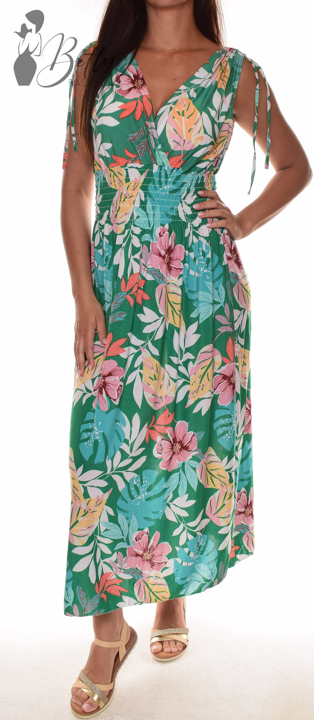Mellnél átlapolt, derékban gumírozott maxi ruha S/M, L/XL