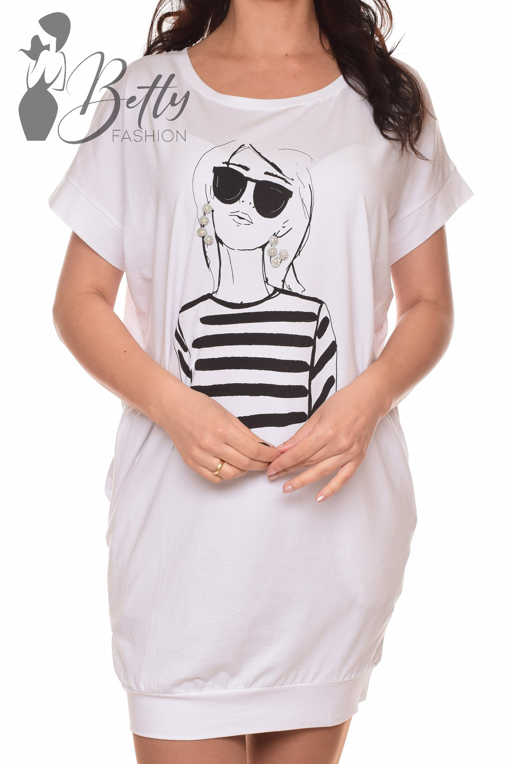 Női alak mintás, gyöngy és strassz díszes, kerek nyakú, rövid ujjú ruha