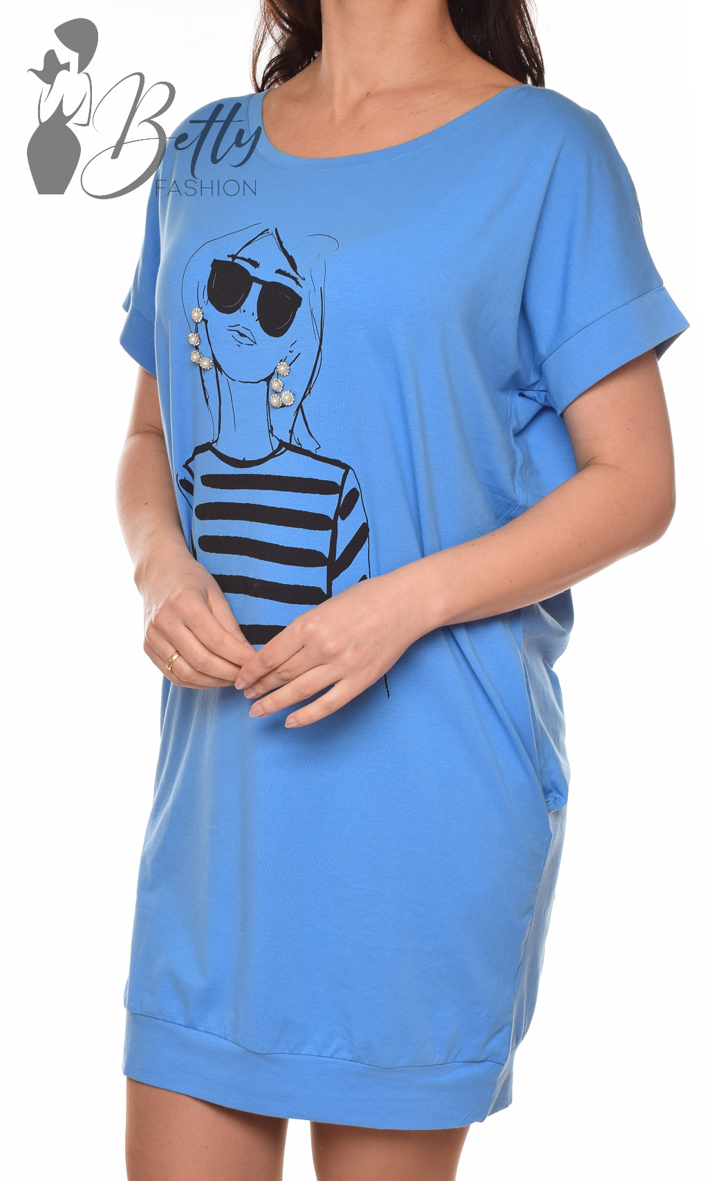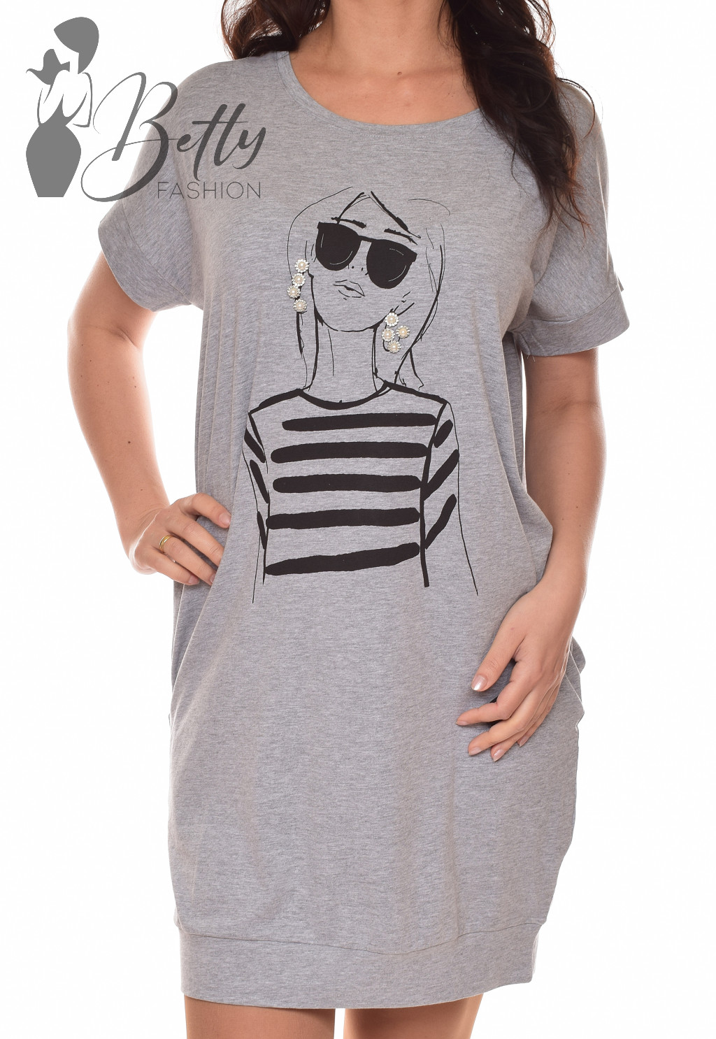 Női alak mintás, zsebes, laza fazonú ruha S/M, L/XL