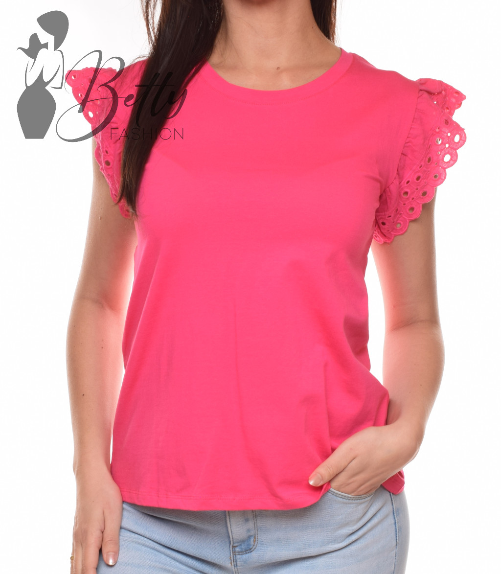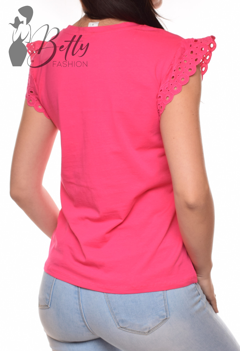 Pink színű, madeirás és fodros ujjú felső S, M, L, XL