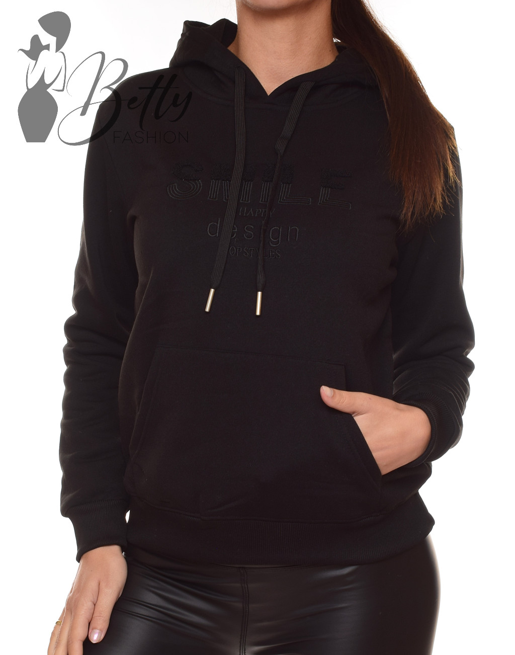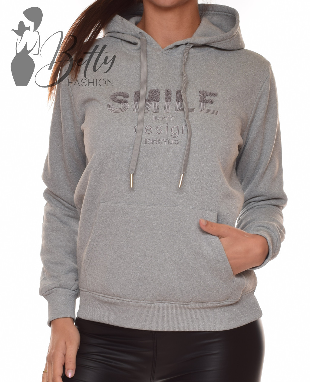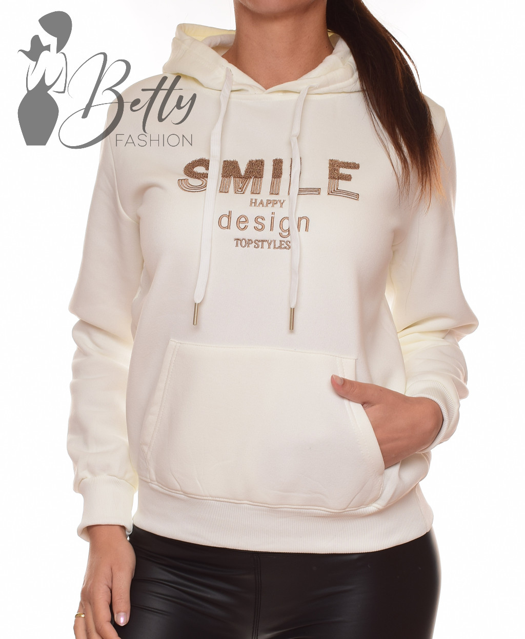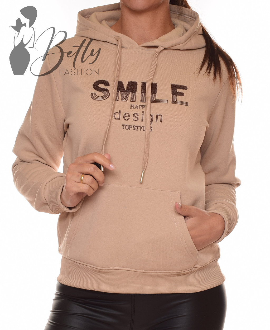 Smile feliratos, kapucnis, kenguru zsebes pulóver
