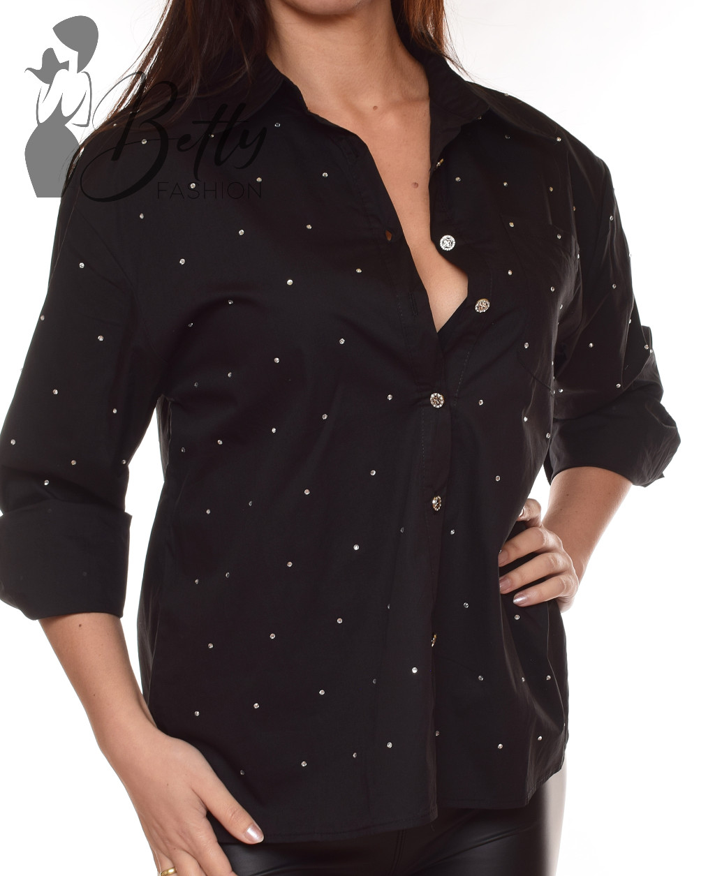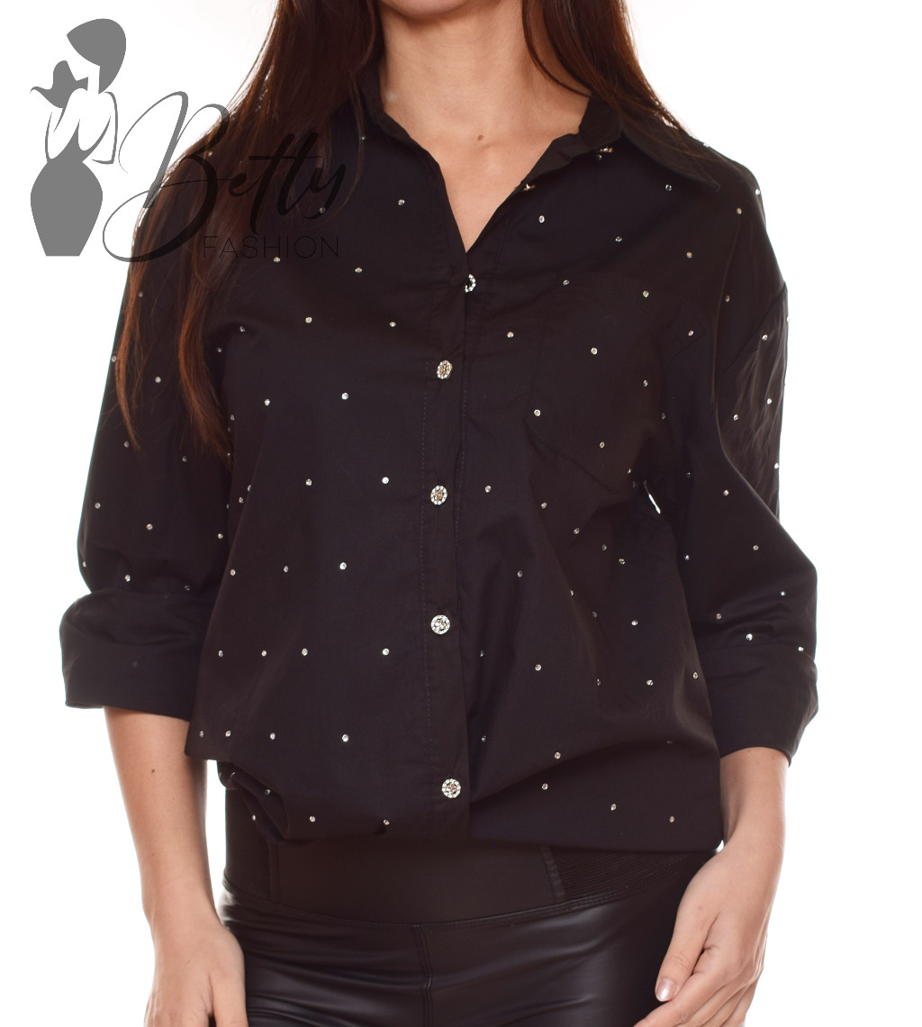 Strasszköves, bővebb szabású, lenge, galléros ing