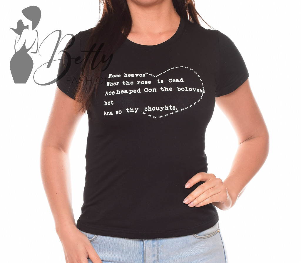 Szív alakban feliratos, rövid ujjú pamut felső S, M, L, XL