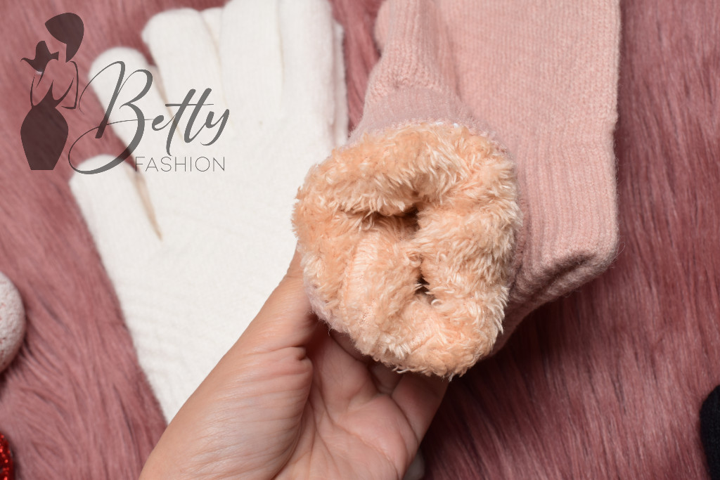 Anyagában mintás, puha szőrmebélelt, egyszínű kesztyű