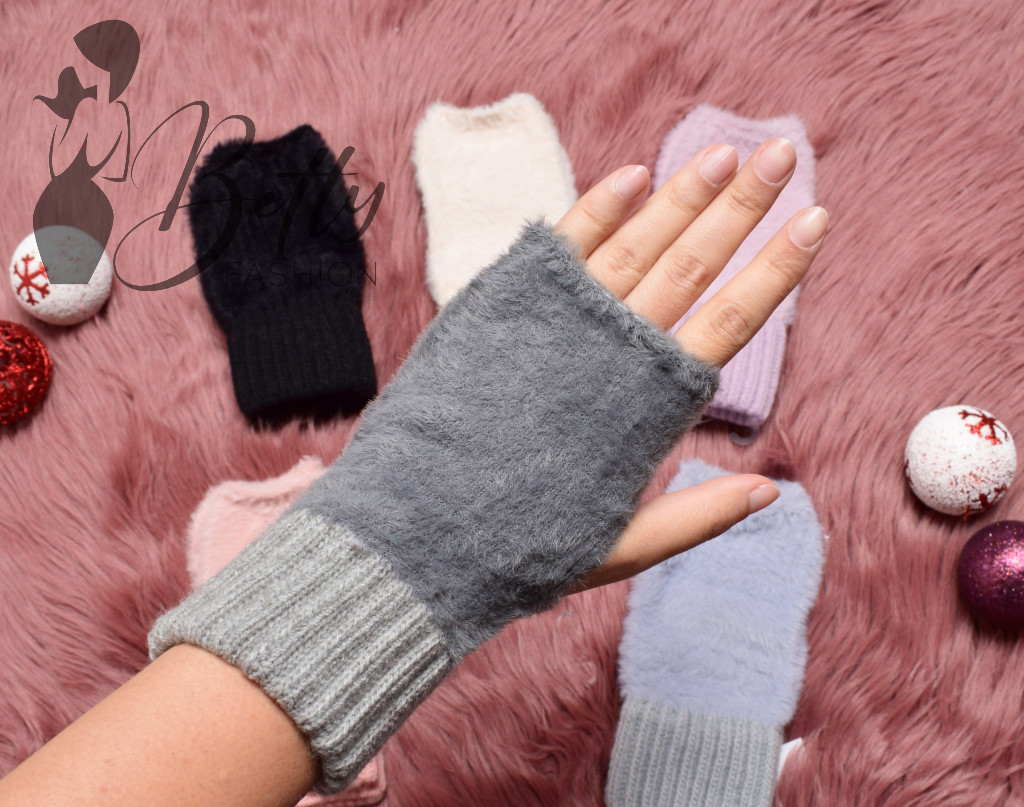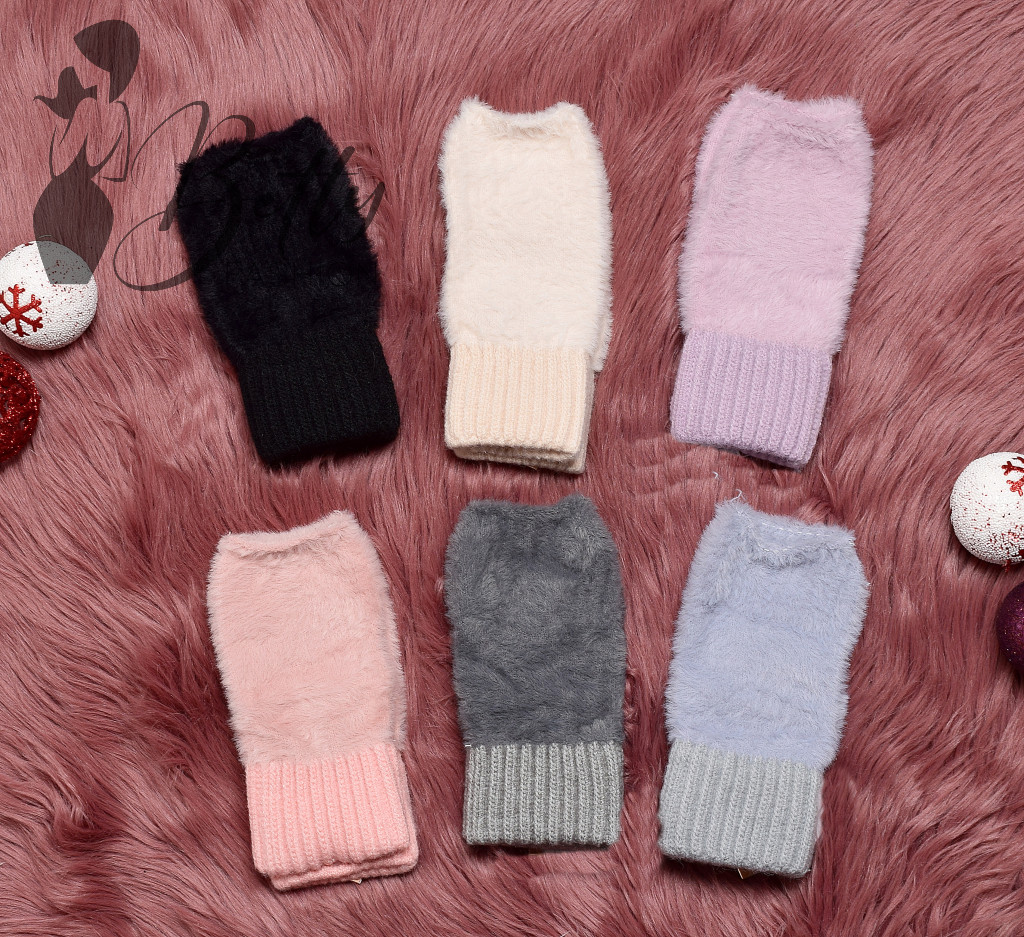 Puha tapintású, szőrmés, ujjvég nélküli kesztyű