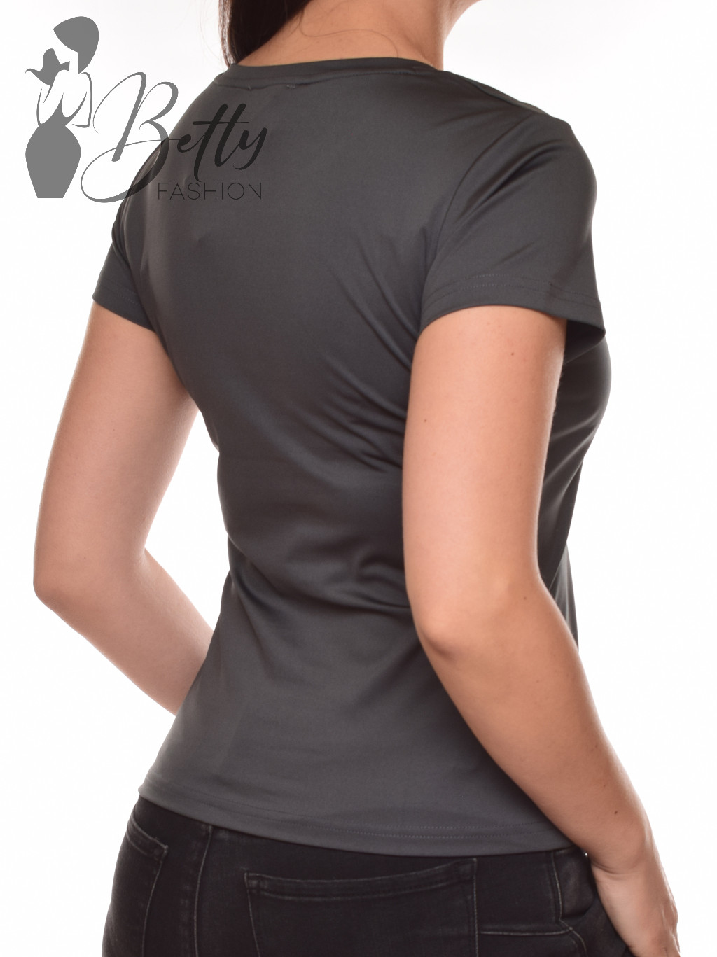 Szürke színű, selymes anyagú felső S, M, L, XL