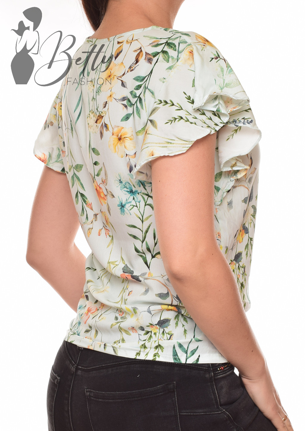 Tavaszi virágmintás, fodros ujjú felső S, M, L, XL