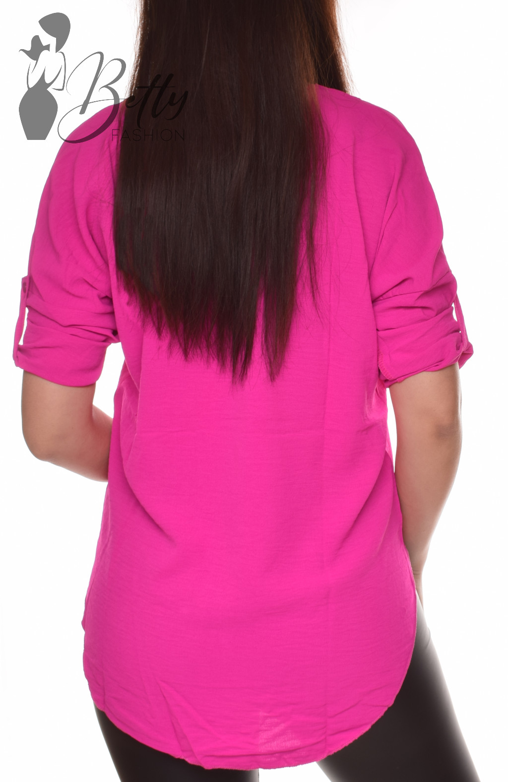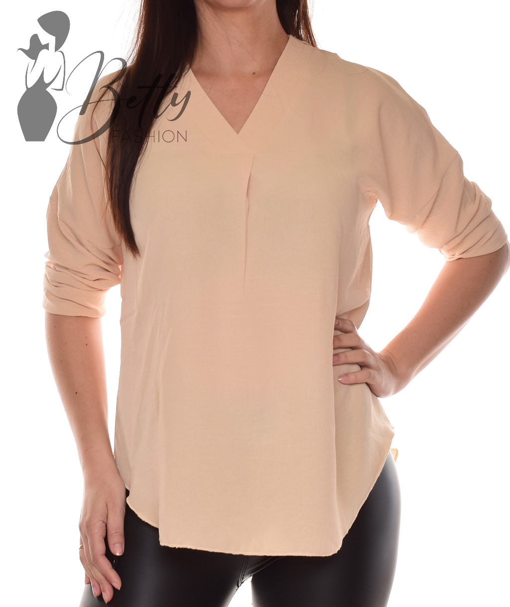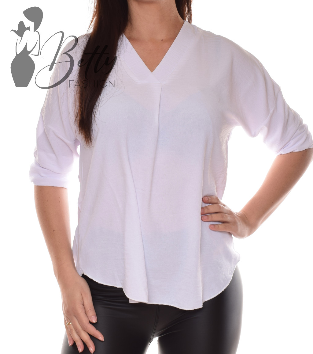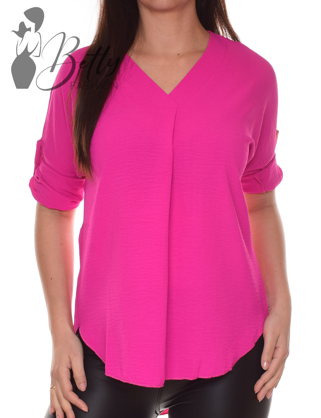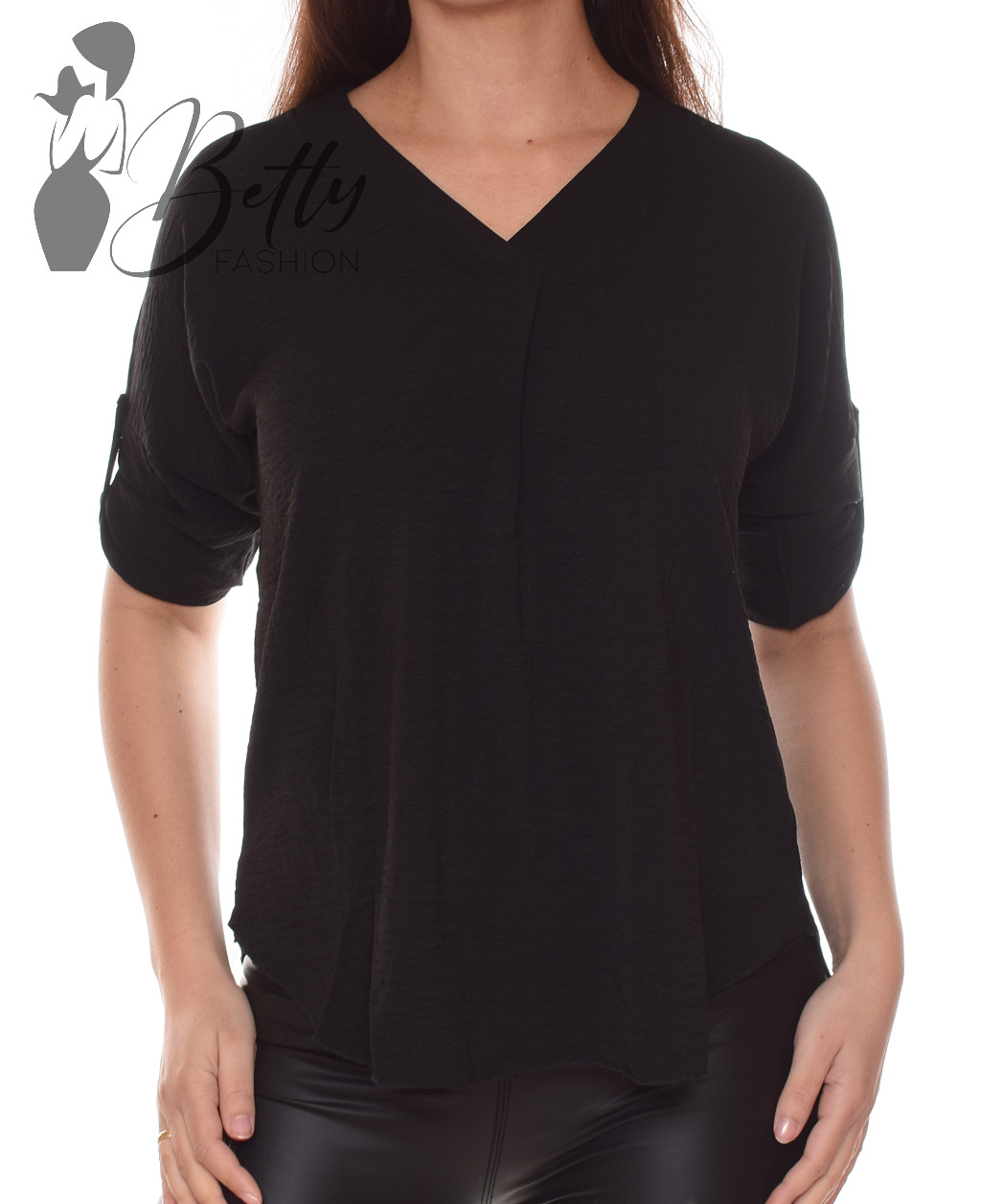 V-kivágású, bő szabású, roll-up ujjú blúz