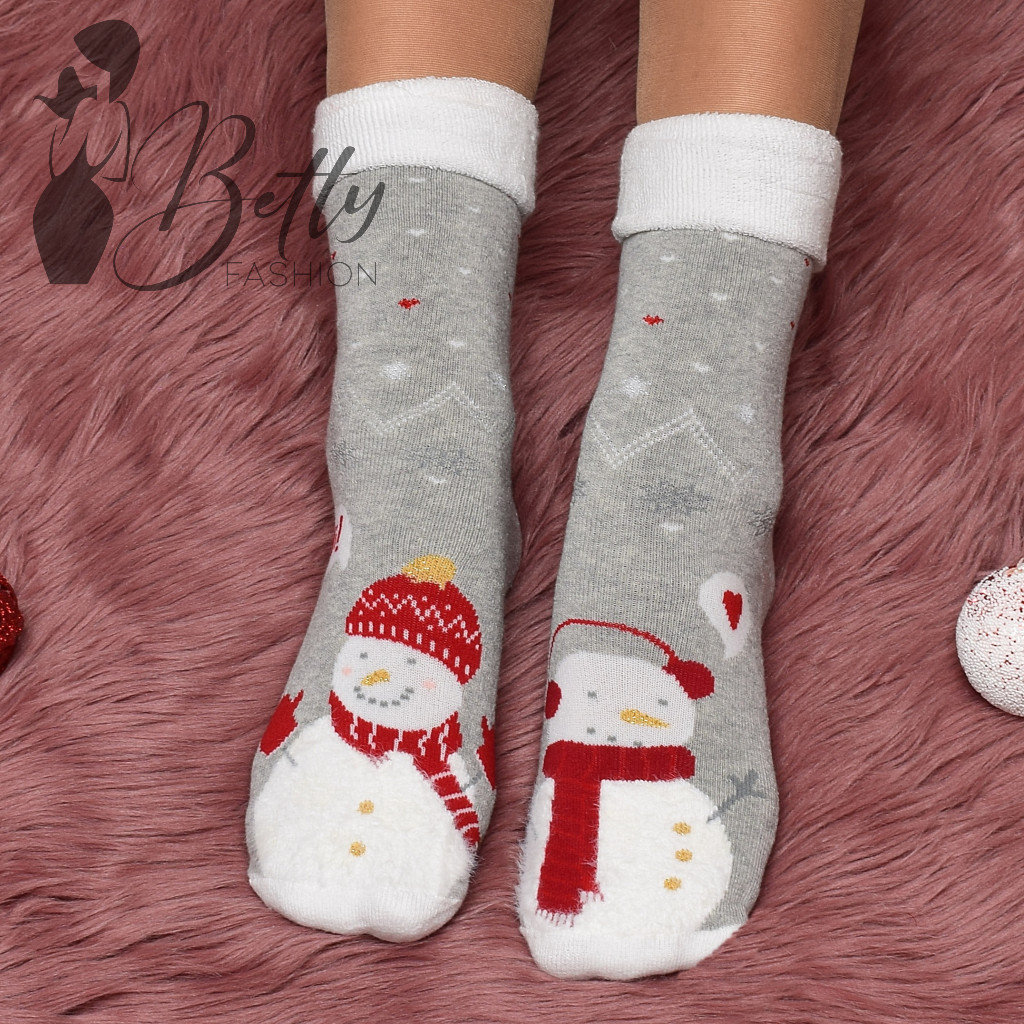 Világosszürke alapon hóember mintás, puha thermo zokni