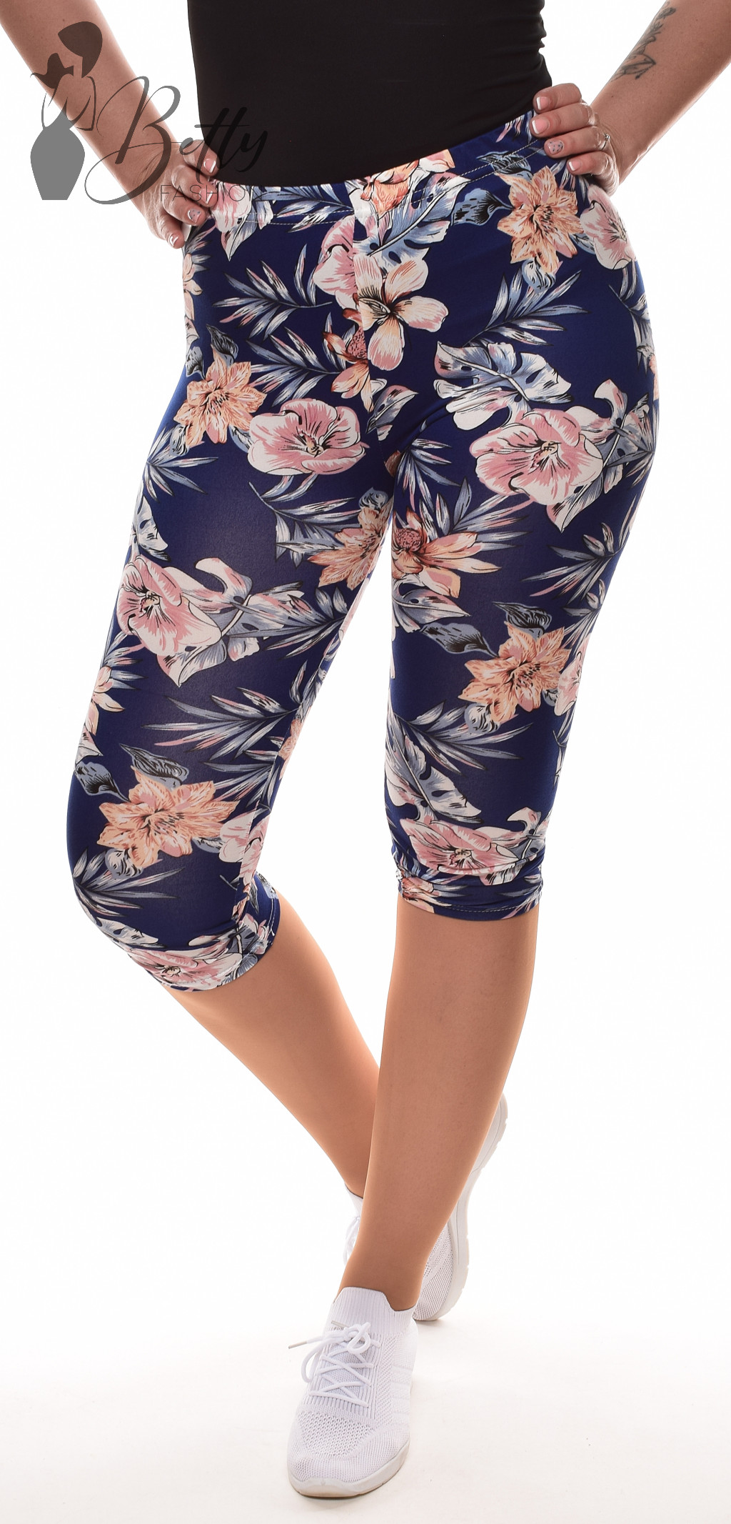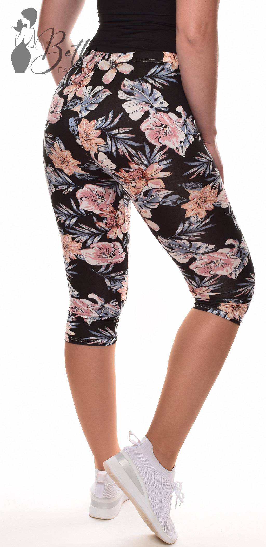 Gumis derekú, testhezálló fazonú, virágmintás térdnadrág
