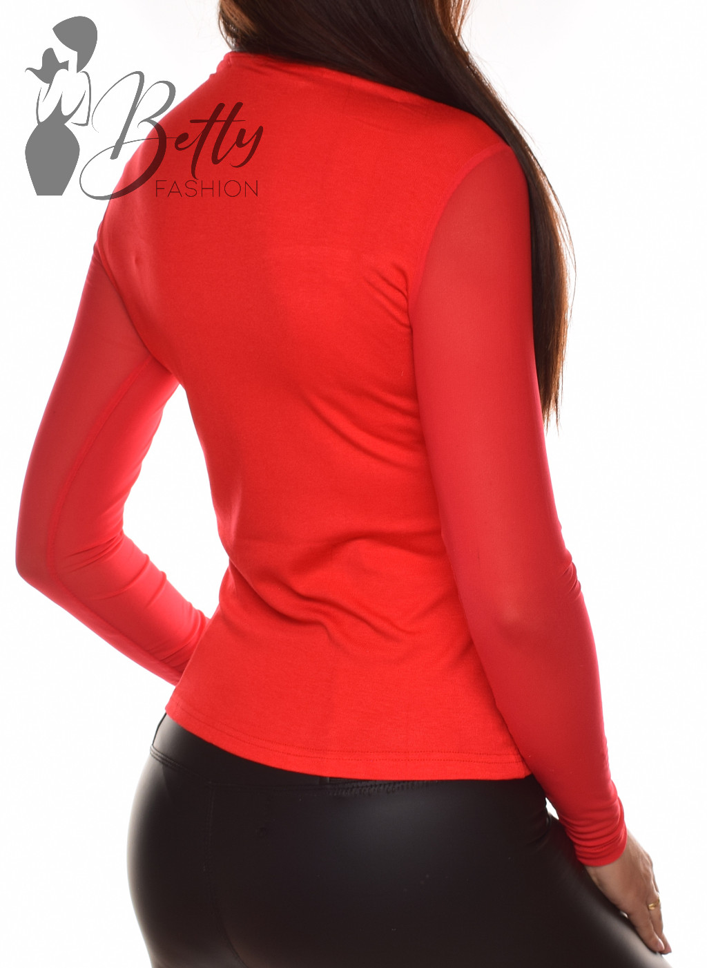 • Egyszínű, magasított nyakú, mellnél tüllbetétes felső