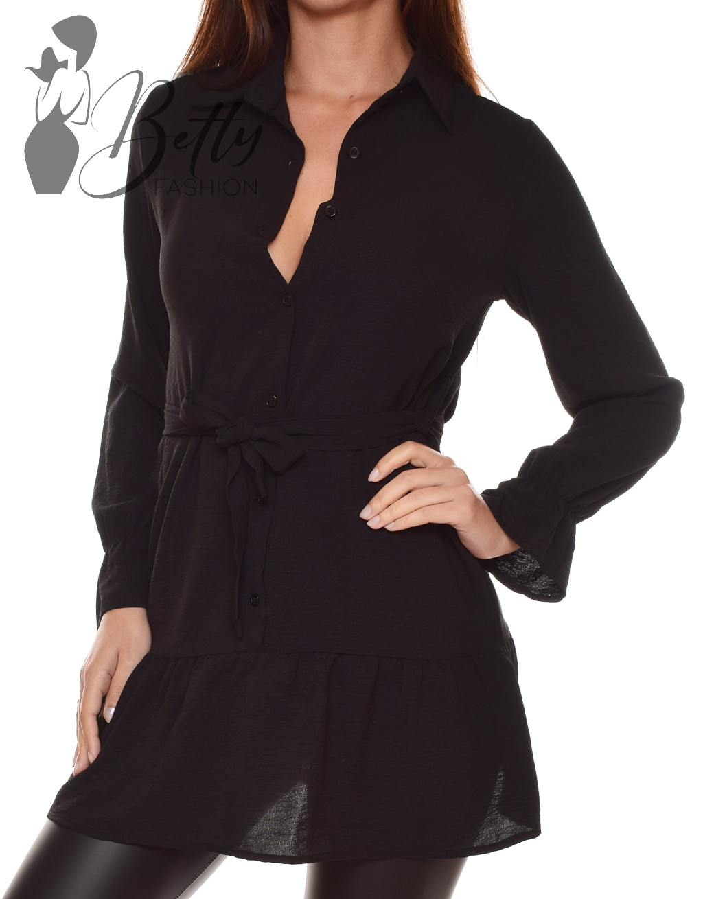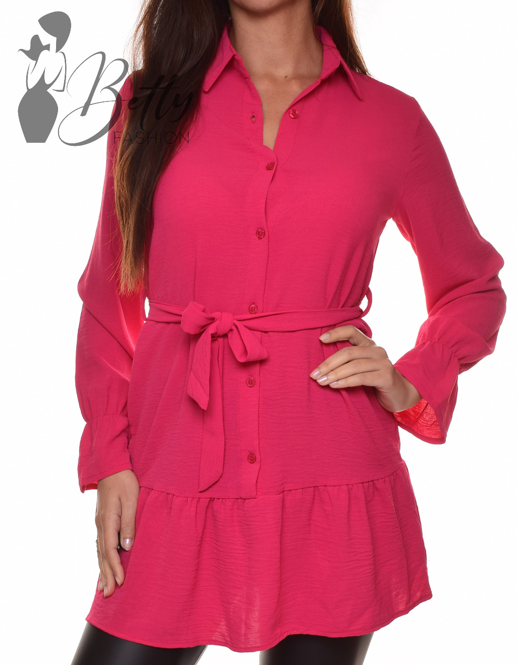 • Egyszínű, alul és az ujja végén fodros ing-tunika