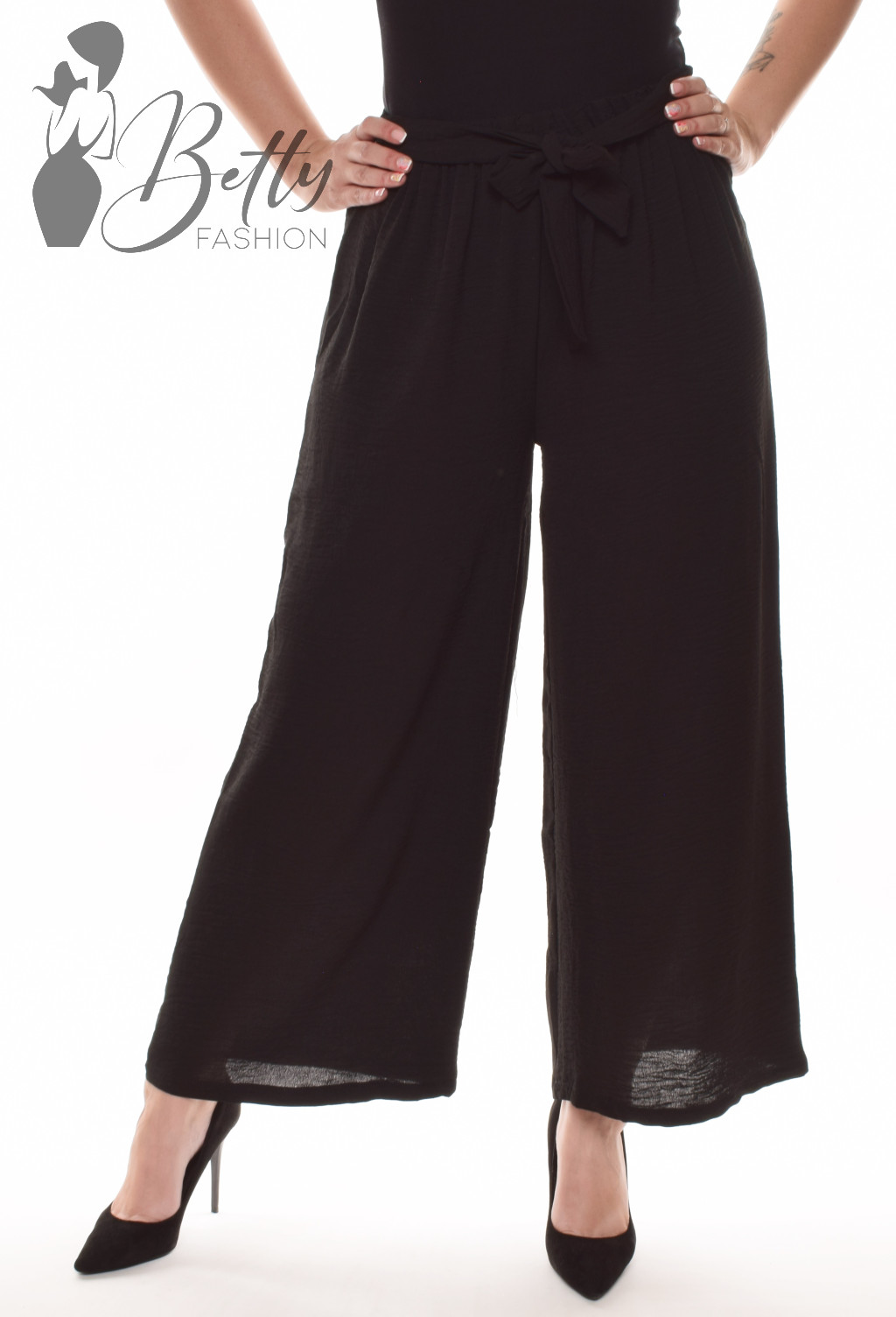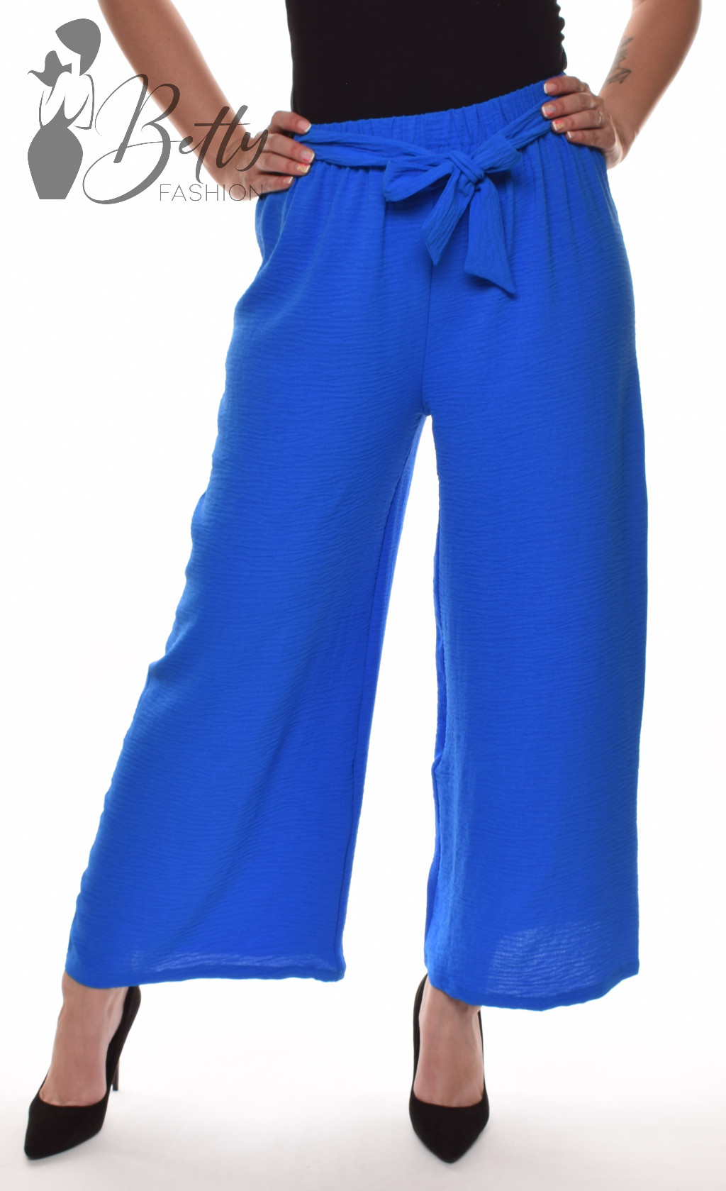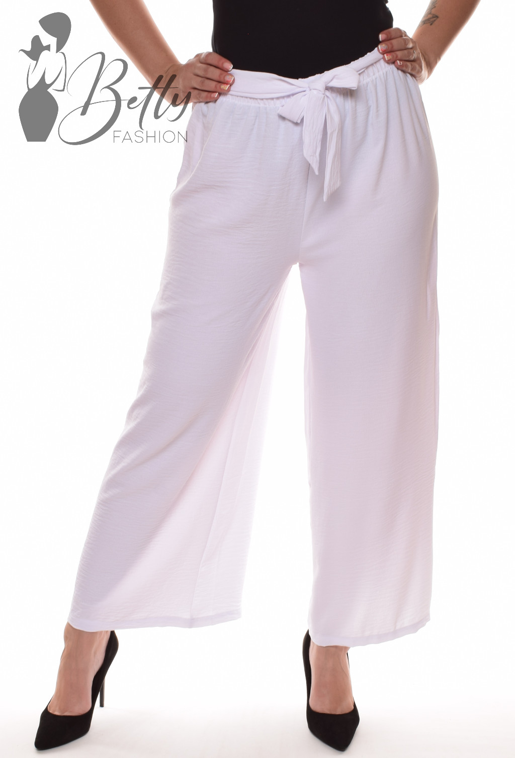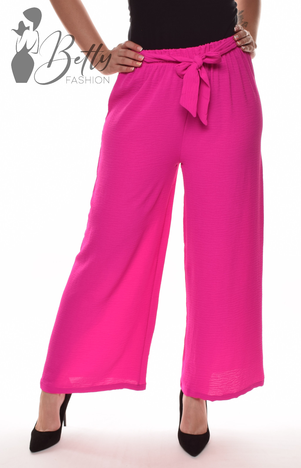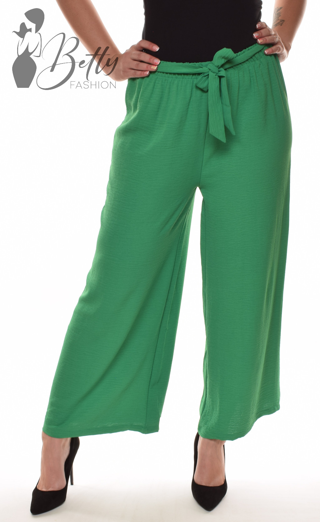 • Egyszínű, gumis derekú, saját anyagából öves, bő szárú nadrág