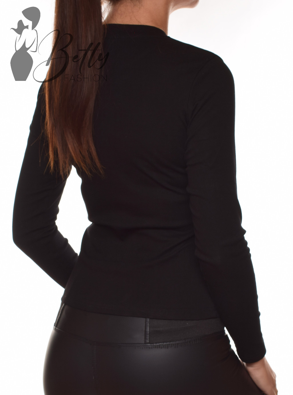 • Kerek nyakú, nyakánál fémdíszes, díszvarrásos felső