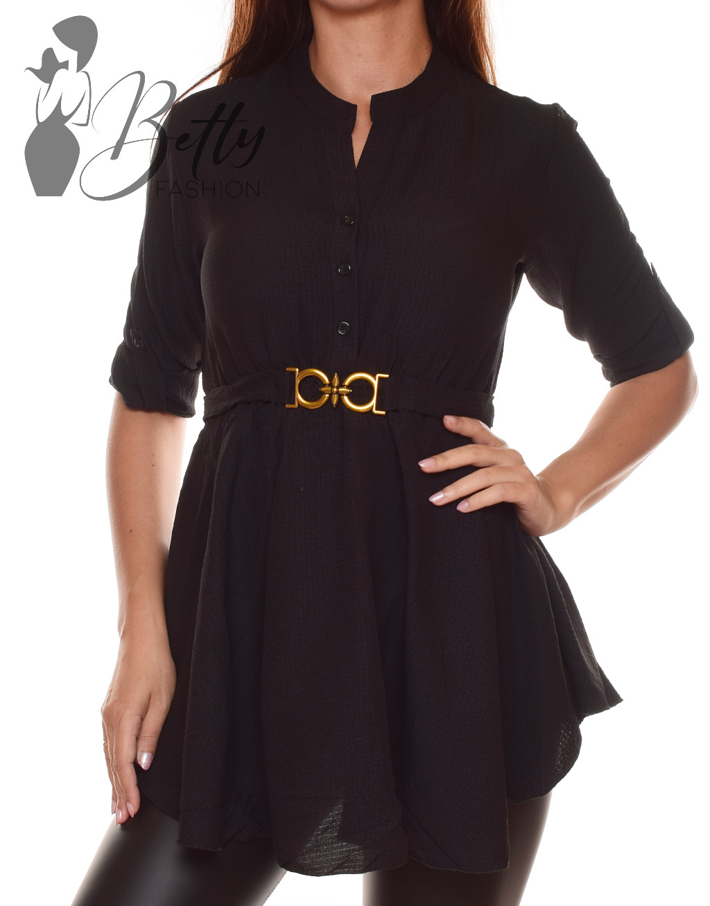 • Egyszínű, derékig gombos, derékban öves ing-tunika