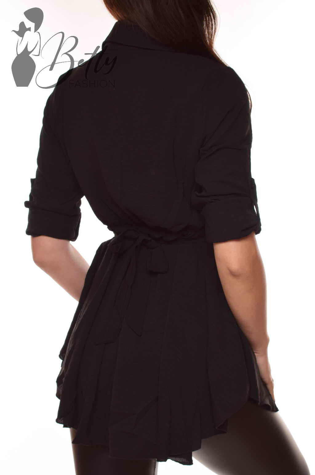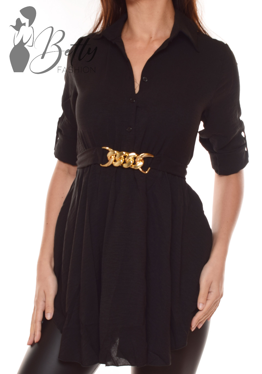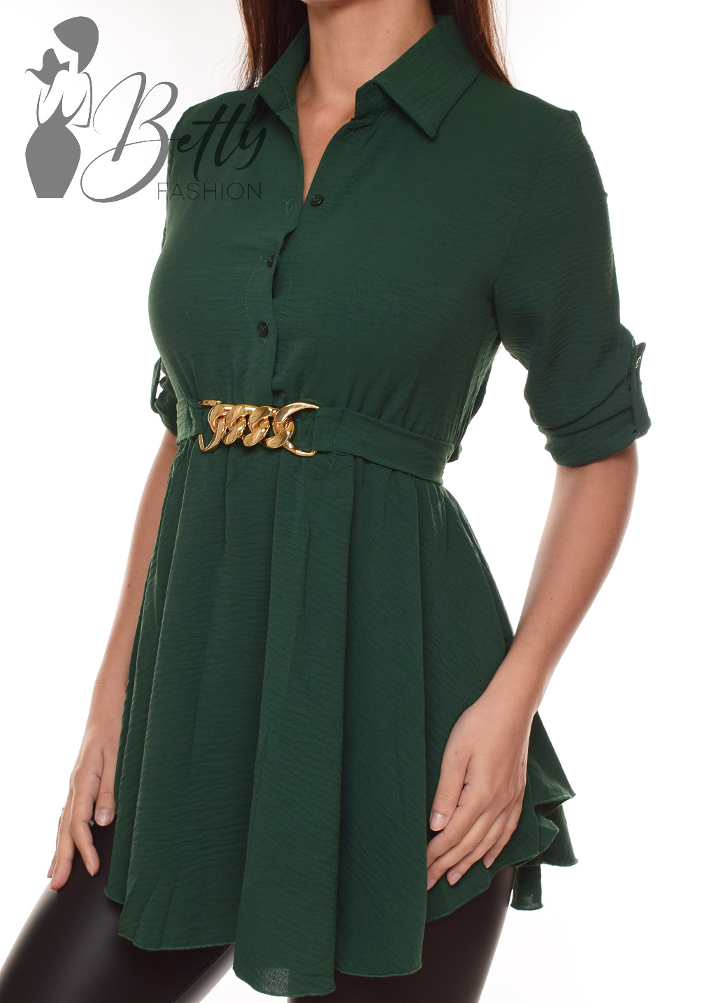 • Egyszínű, derékig gombos, derékban öves ing-tunika