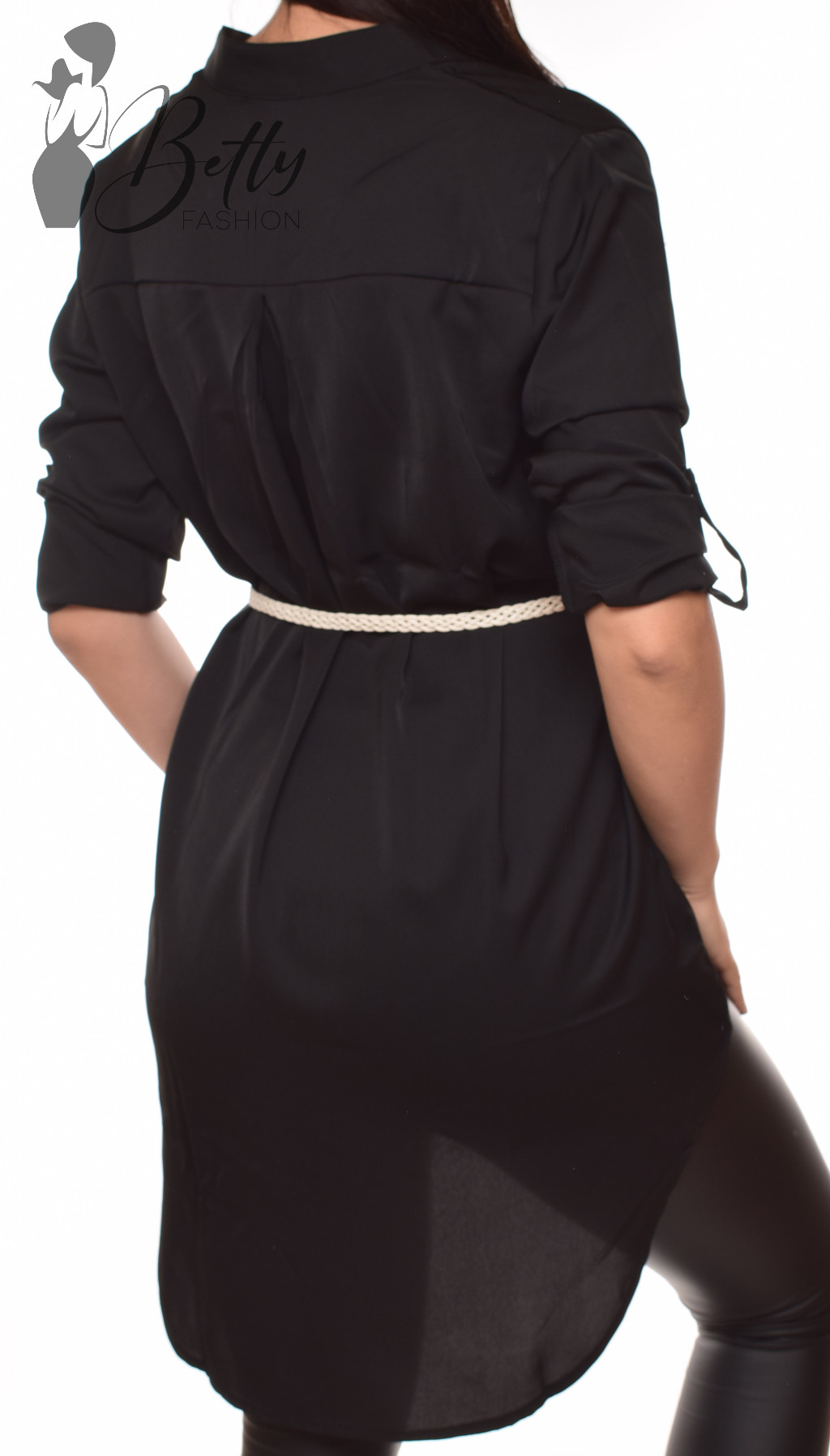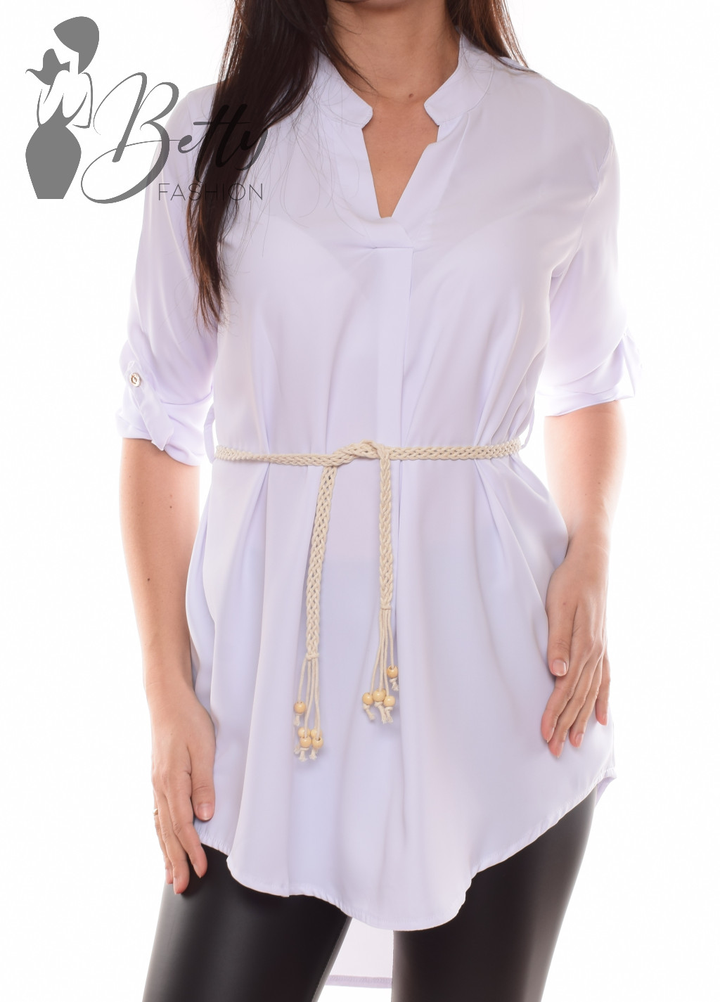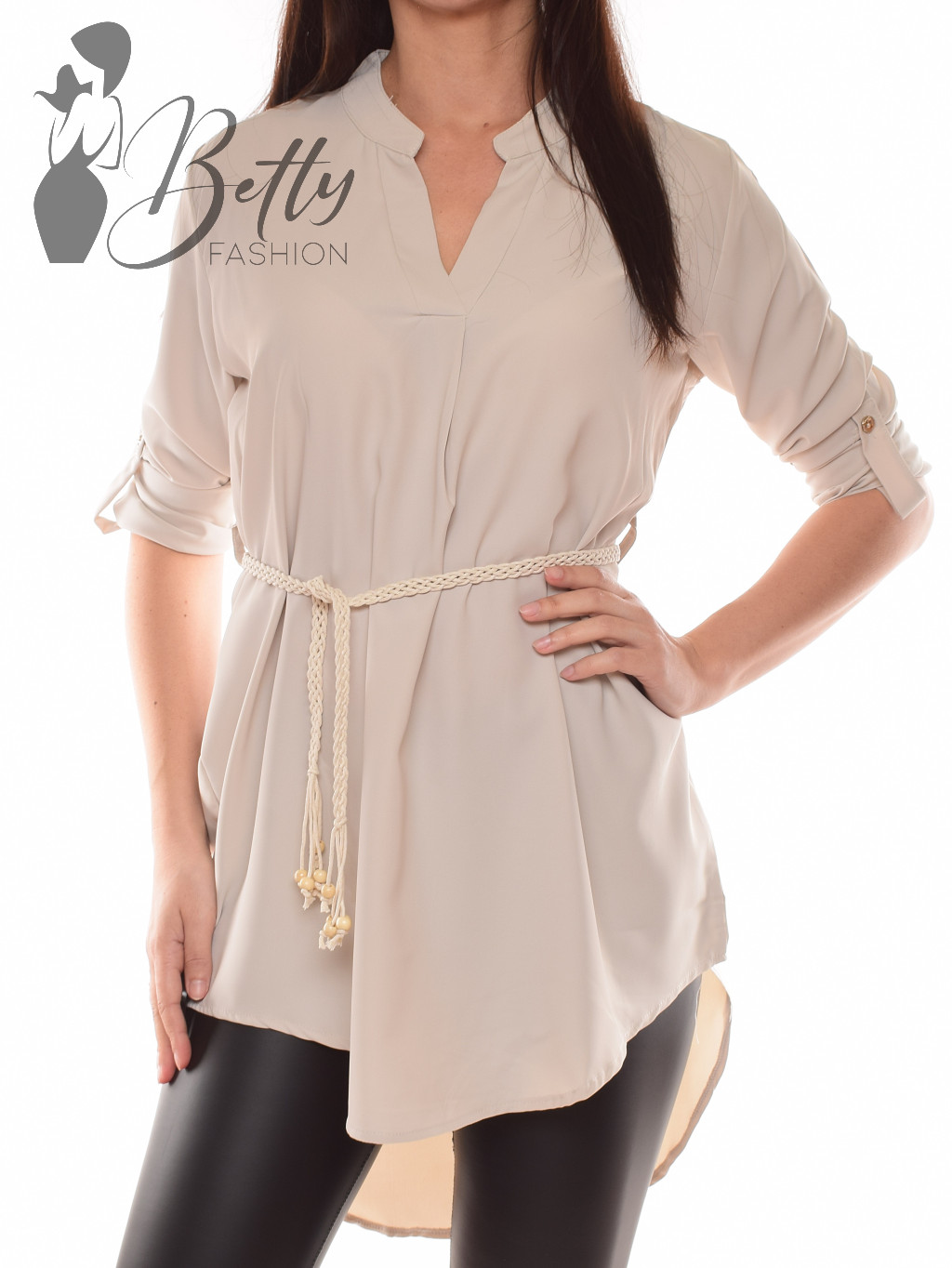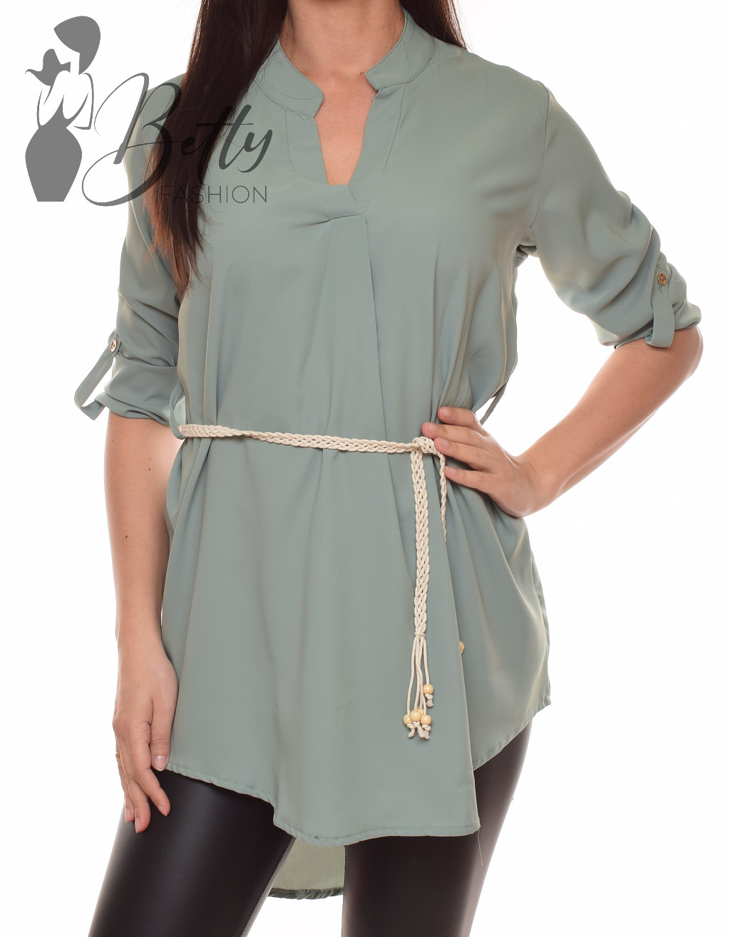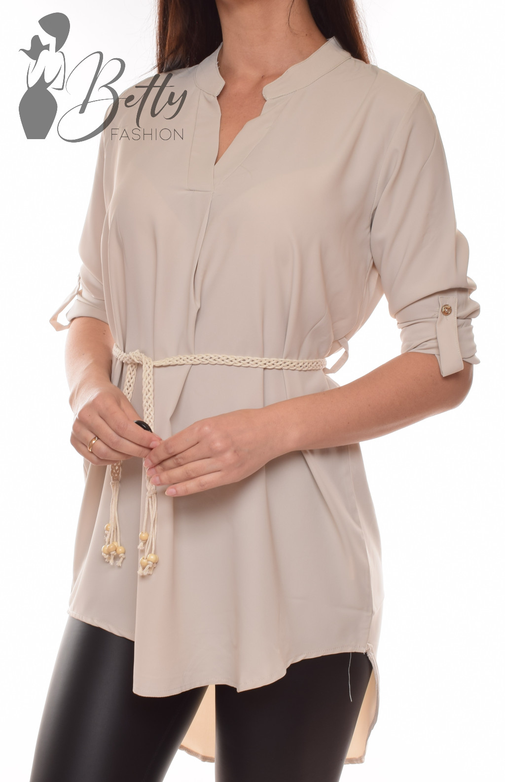 • Egyszínű, V-kivágású, deréknál öves ing-tunika