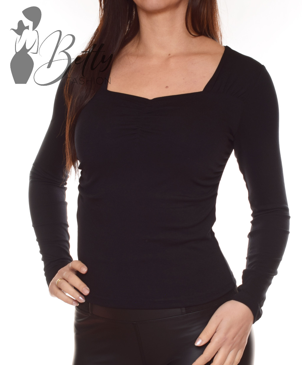• Mellnél és vállnál ráncolt, szögletes kivágású, hosszú ujjú felső