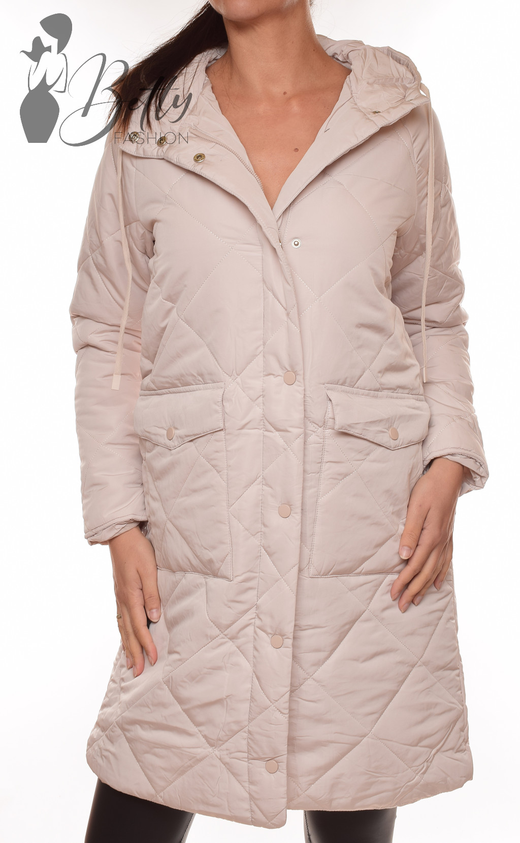 • Bézs színű, hosszú és bő szabású kabát