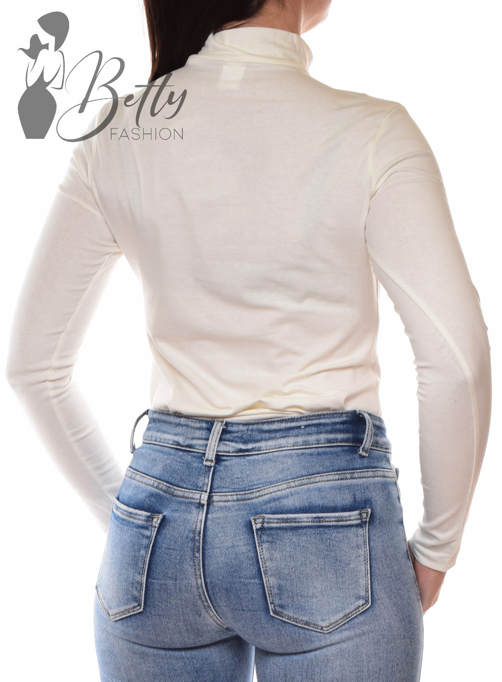 • Fehér színű, garbós nyakú, hosszú ujjú felső