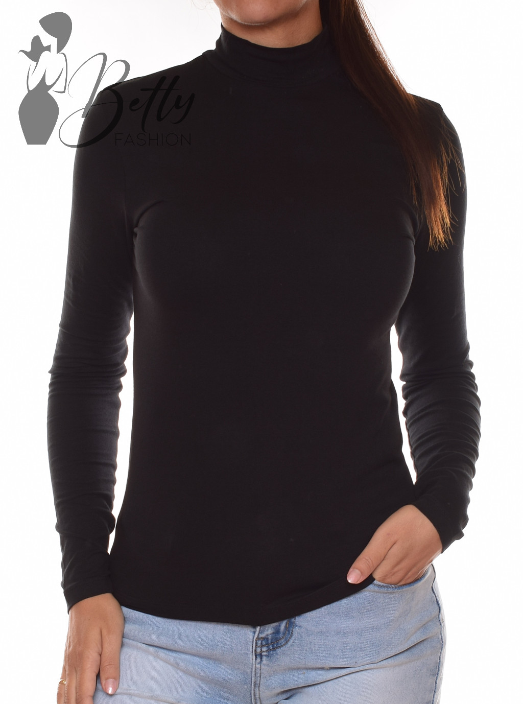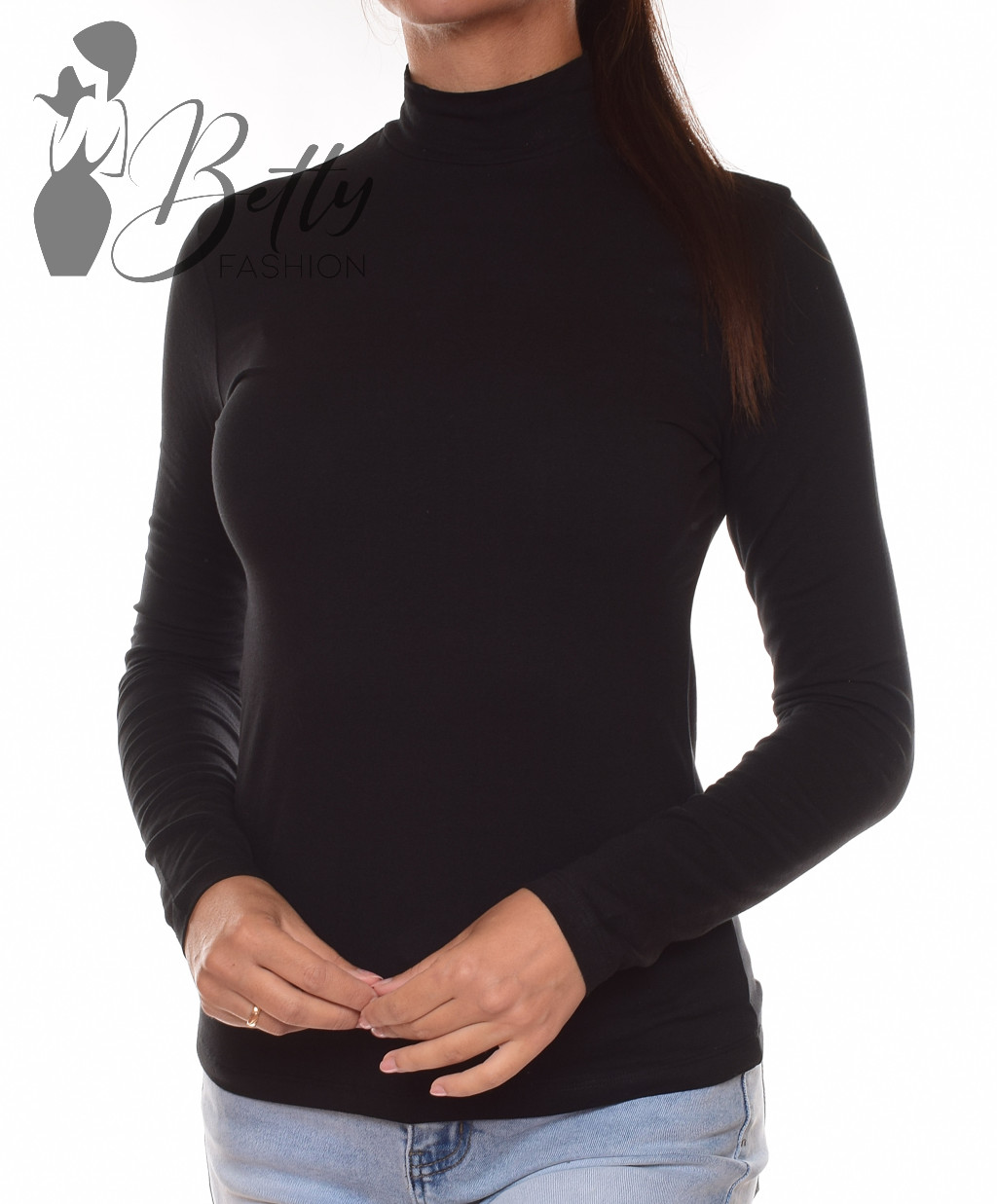 • Fekete színű, félgarbós nyakú, hosszú ujjú, rugalmas pamut  felső