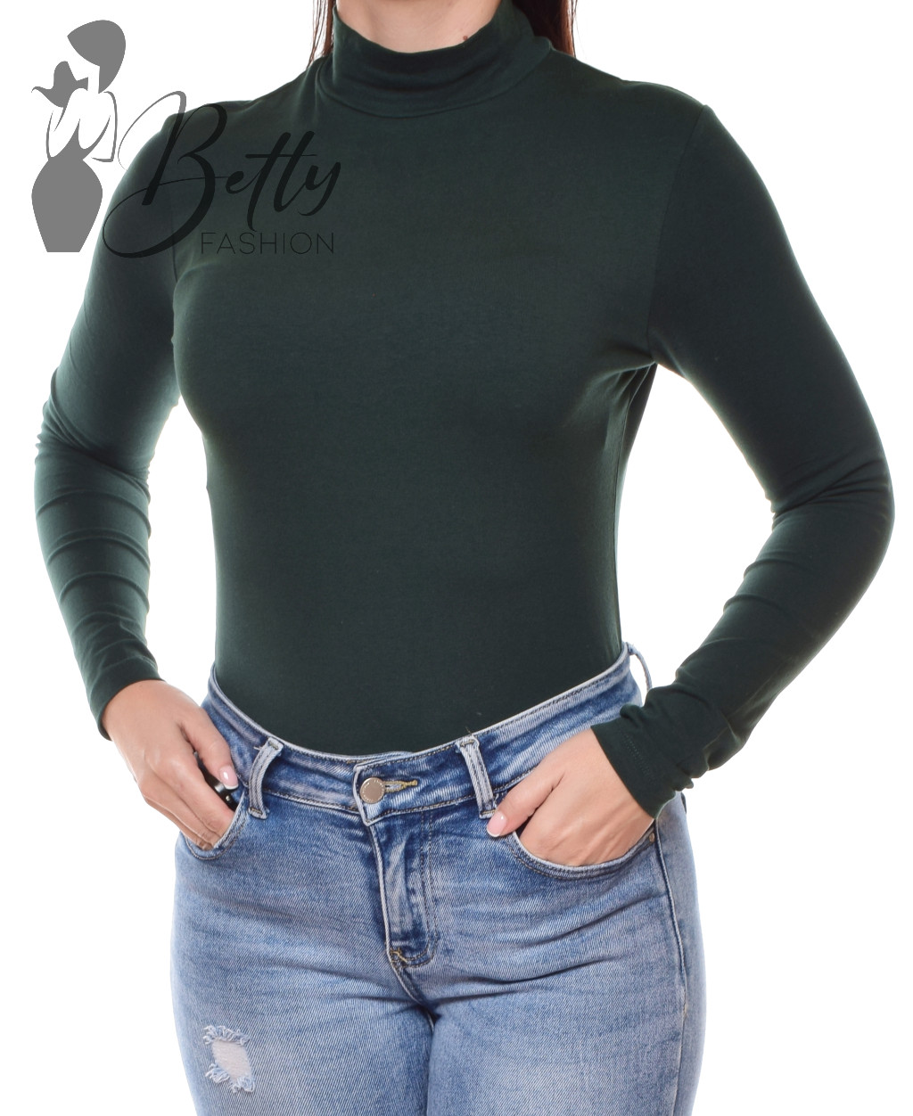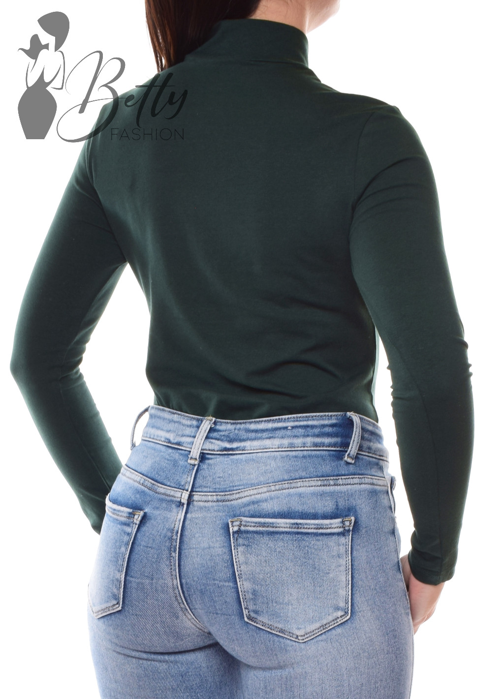 Sötétzöld színű, garbós nyakú felső S, M, L, XL, 2XL