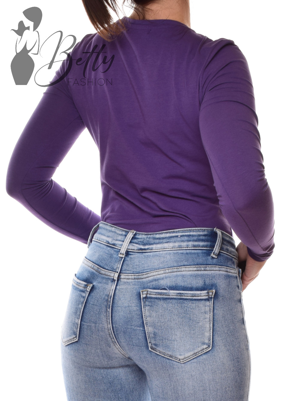 • Sötétlila színű, V-nyakú, hosszú ujjú felső